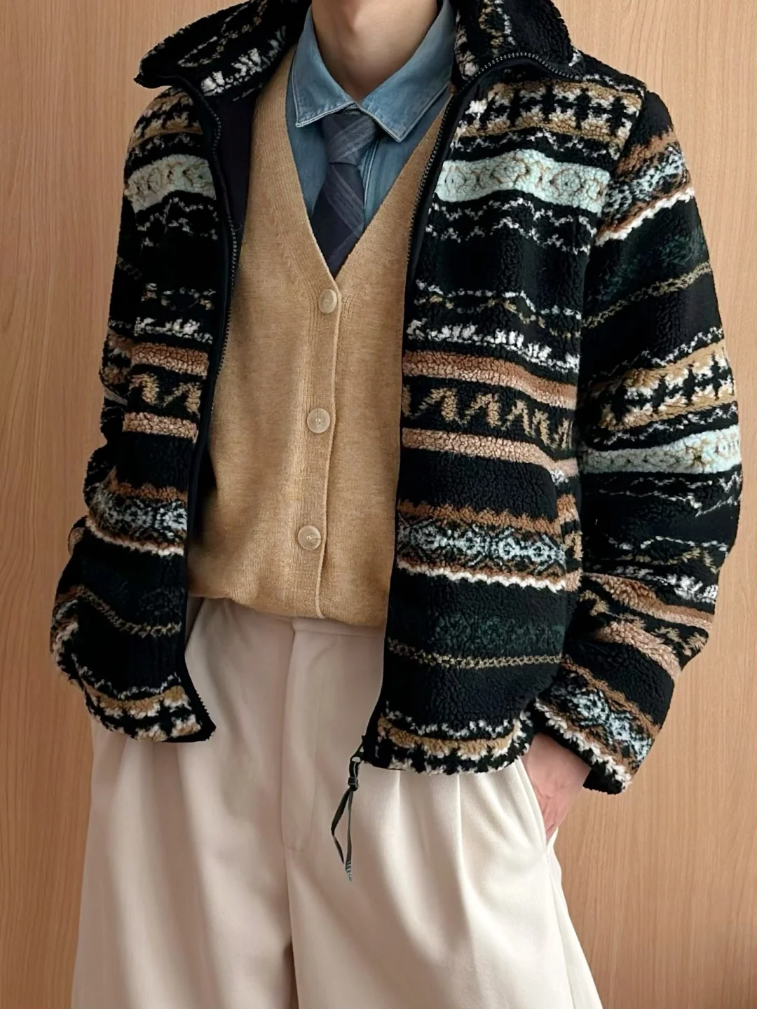 当我拥有了一件复古花纹摇粒绒外套