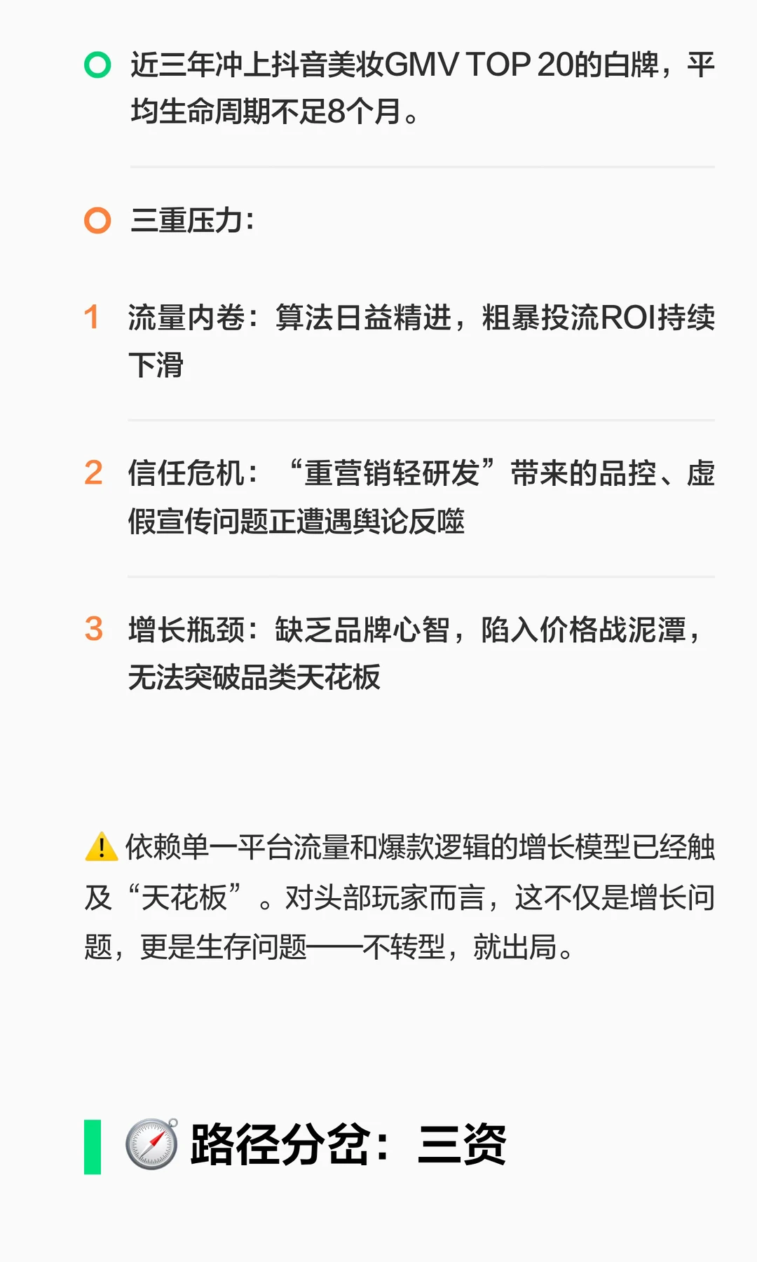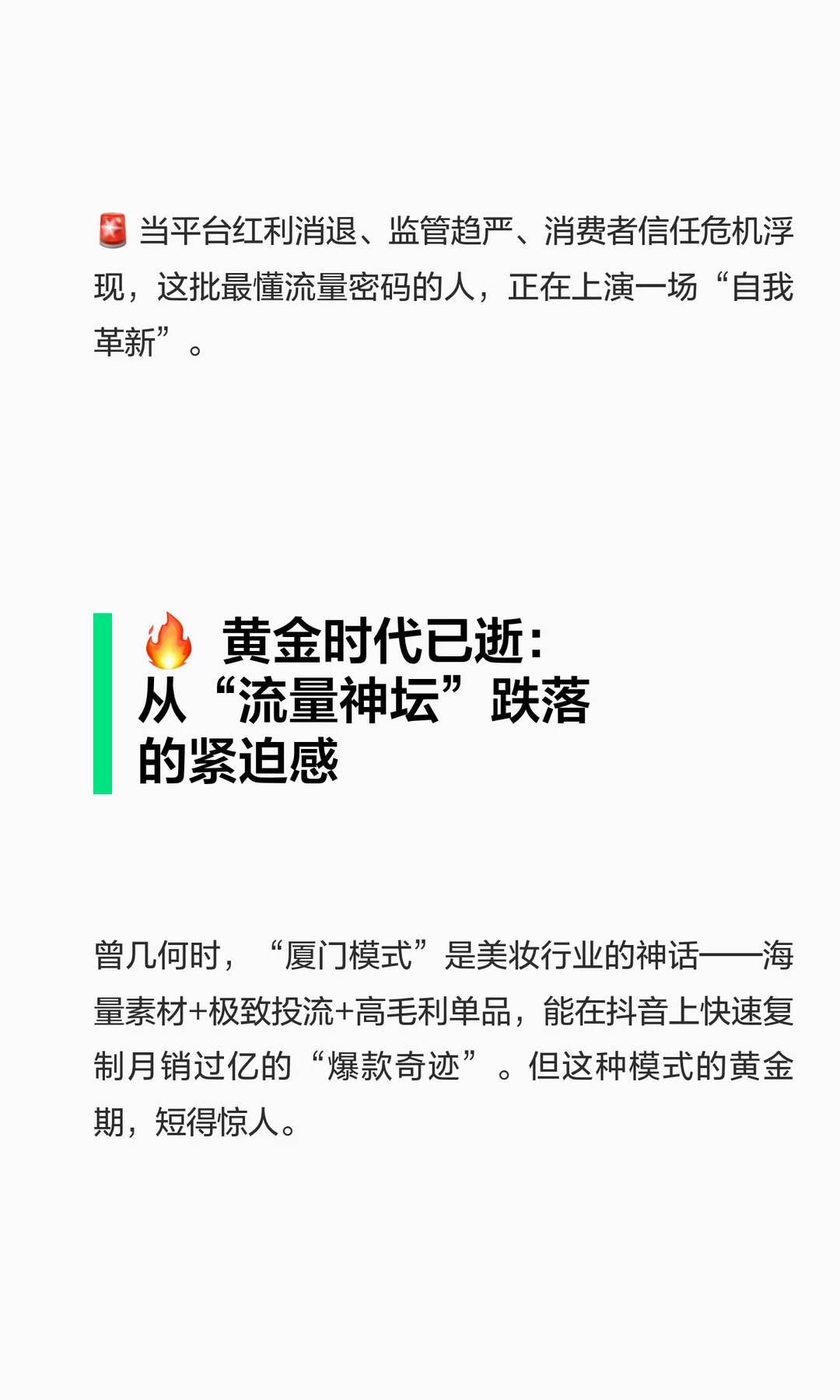 面对平台红利消退、监管趋严和消费者信任危机,美妆品牌转型迫在眉睫。三资堂和可逐分别通过渠道跃迁和文化加持,探索品牌化路径。转型需平衡短期现金流与长期品牌投入,重建市场信任是核心。