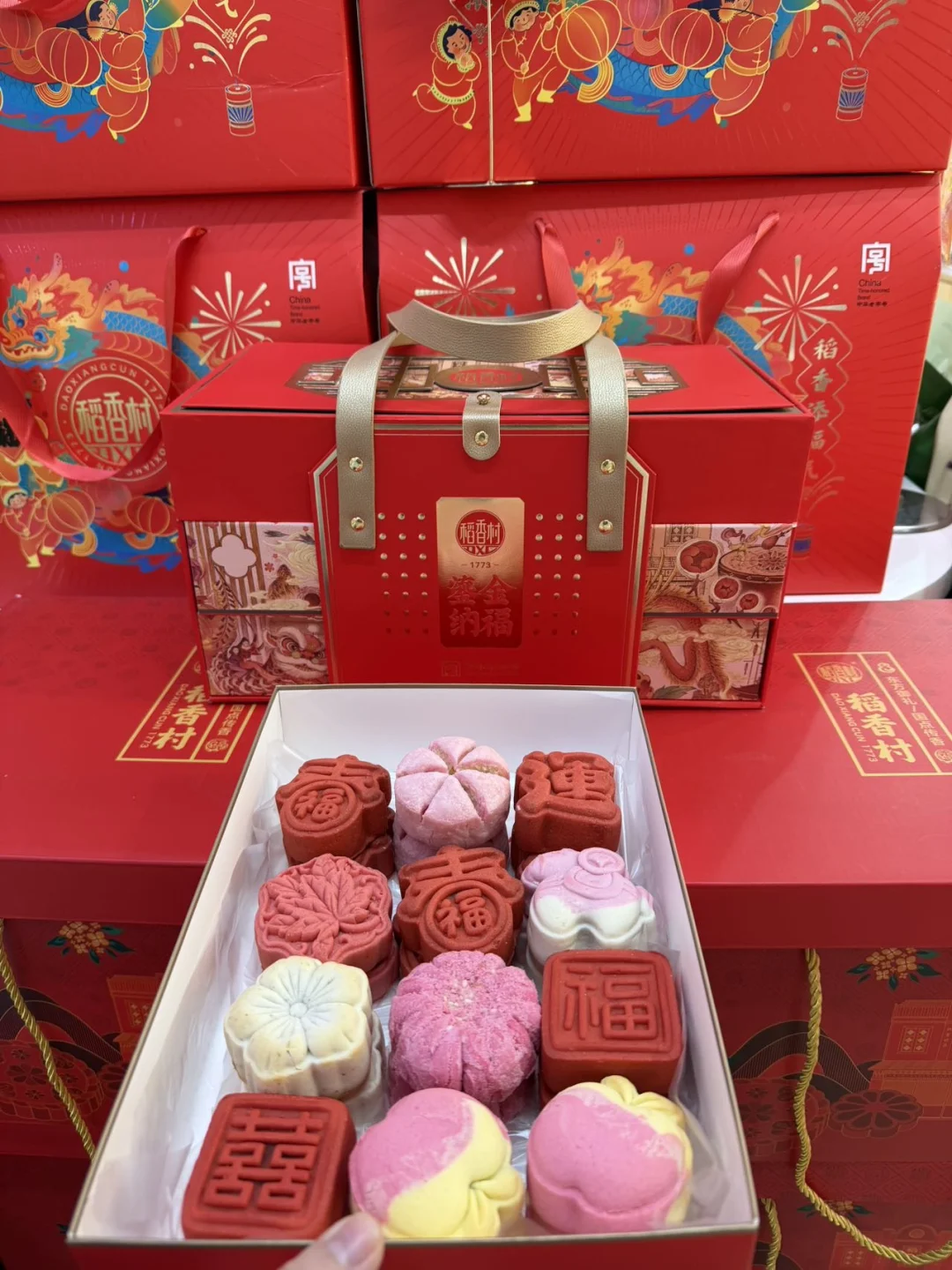 进店就能闻到糕点的香味!! 平时就用来买点小点心解馋!这年前了,必须安排上呀??颜值居然都巨巨巨喜庆!! ⭕️马年限定新品小点心,颜值➕味道,top1~💮 🎠马上有钱!紫薯山药的!贼好吃,也不甜! 绵密的紫薯搭配糯糯的山药,好吃的! 🐎马到成功~橘香蜂蜜馅儿,清爽! 这两款都给我去买!!!新的一年先吃下这‘好兆头’😃 红彤彤的🏮运字饼,是糖醇黑芝麻馅的! 🧨新春饼是红枣核桃馅的!这满当当的整一盘,这过年的小气氛,一下就拉满啦!🧧 🪷桂花莲蓉饼!好仙!~! 过年你只需要把各种糕点搭配成礼盒,茶几一摆~氛围感拉满,还好吃! 年货礼盒我挑了这两款🎁如意尊礼、鎏金纳福礼盒! 只能偷偷告诉你:快快来买!!!我怕要补货了 认准这个“DXC”圈标~才是正宗稻香村‼️