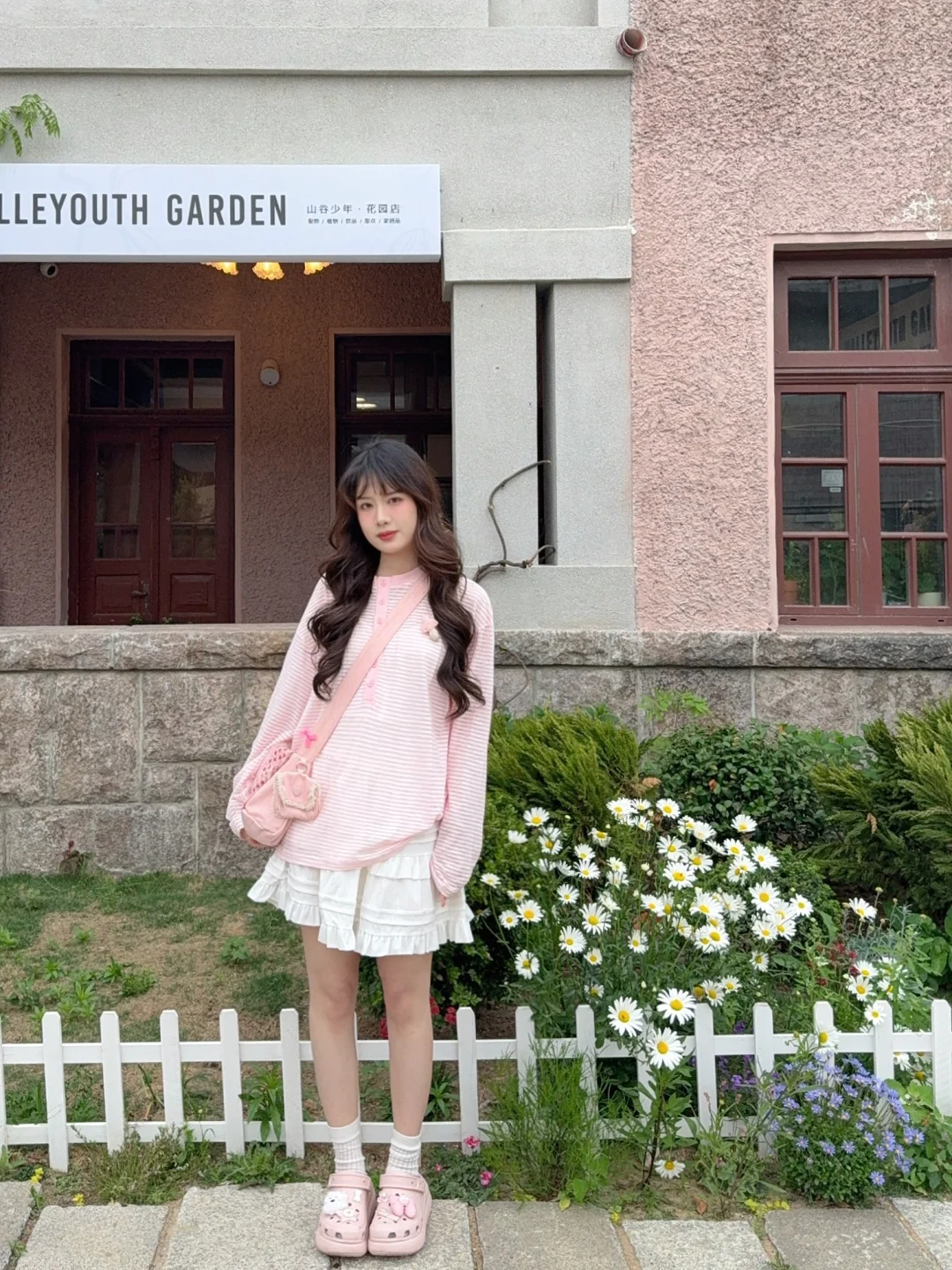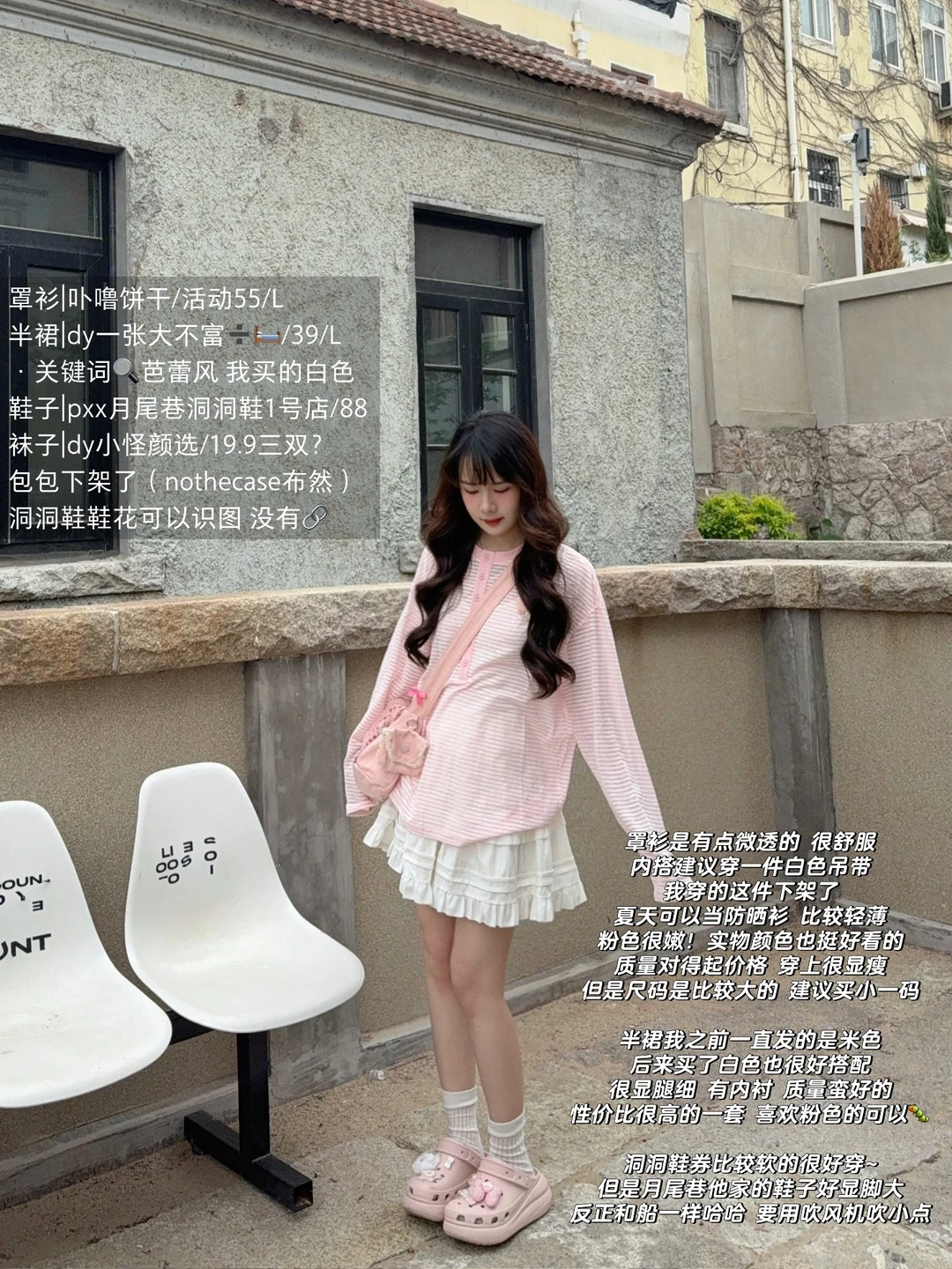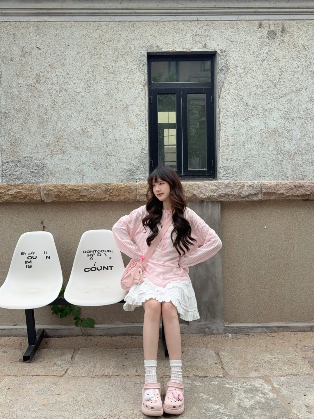 168/106左右 粉粉的一套 也比较平价~ 日常穿或者出去玩穿都很好看 罩衫就是很方便 随便一套就能出门 粉色➕白色就是很乖 罩衫搭配白色或者米白色短裤也好看 搭配白色系拖地裤山本裤也不错 但是就是不太适合搭配长裙 【拍照地点】 📍青岛·波螺油子艺术谷