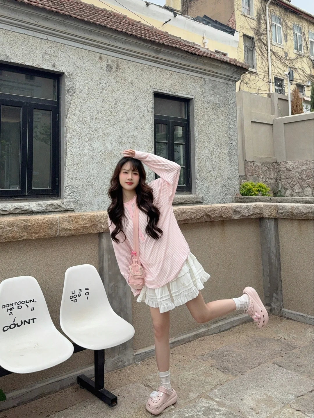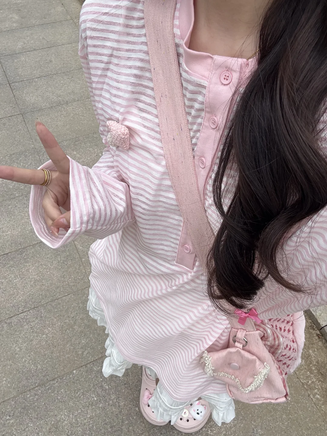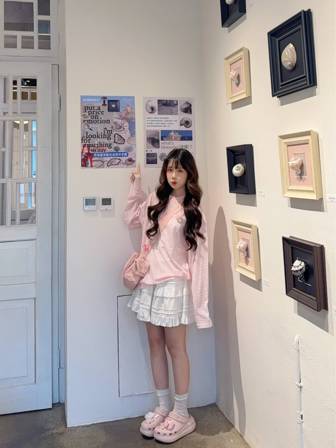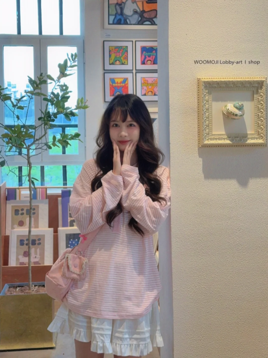 168/106左右 粉粉的一套 也比较平价~ 日常穿或者出去玩穿都很好看 罩衫就是很方便 随便一套就能出门 粉色➕白色就是很乖 罩衫搭配白色或者米白色短裤也好看 搭配白色系拖地裤山本裤也不错 但是就是不太适合搭配长裙 【拍照地点】 📍青岛·波螺油子艺术谷