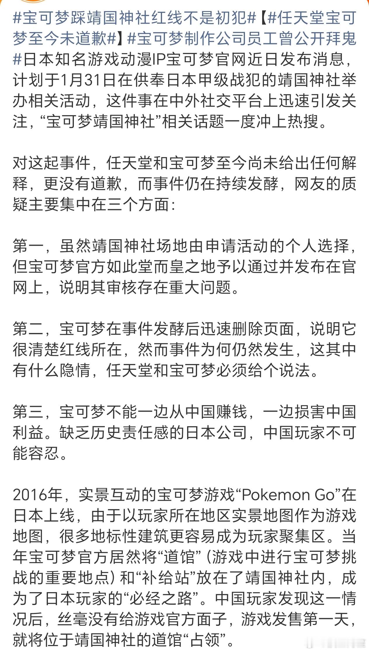 宝可梦和任天堂是要干什么啊……宝可梦踩靖国神社红线不是初犯