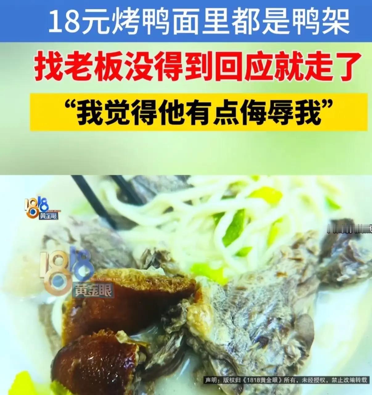 现在的年轻人是真的会较真! 杭州小伙点烤鸭面,不见肉只见骨,怒找媒体:“我不要赔偿,就看不惯欺骗!” 一碗烤鸭面,端上来的不是肉香扑鼻,而是满眼的骨头碎渣。这发生在杭州一家普通面馆的场景,成了年轻人“较真”的缩影。当26岁的小张面对这碗几乎找不到肉的“烤鸭面”时,他选择了较真——不是为了一分钱赔偿,而是为了一口气:“你可以贵,但不能骗。” 一碗面里的“骨头戏法” 小张那天中午走进这家装修普通的面馆,菜单上“招牌烤鸭面”标价28元。下单时,他期待的是几块油亮酥脆的烤鸭铺在面上。然而面端上来后,他愣住了——所谓的“烤鸭”几乎全是骨头,肉丝稀少得可怜,得用筷子在汤里“打捞”才能找到一点。 “这不是欺负人吗?”小张向老板反映,对方轻描淡写:“烤鸭就是这个样子。”随后便不再理会,忙着招呼其他客人。正是这种态度激怒了小张——他感到的不仅是商品与描述不符,更是一种“被当傻子糊弄”的轻视。 “我不要赔偿,我要一个理” 小张没有选择忍气吞声,也没有直接投诉到监管部门,而是联系了本地媒体。“很多人说我小题大做,一碗面而已。”他面对镜头说,“但今天是一碗面,明天可能就是一箱牛奶、一件衣服、一套房子。如果每个人都觉得‘算了’,那商家的底线只会越来越低。” 这番话说出了许多年轻人的心声。在这个消费无处不在的时代,他们不再是被动的接受者,而是越来越懂得维护自身权益的“较真一代”。他们较真的不是那几块钱,而是消费环境中的公平与诚信。 年轻人为何越来越“较真”? 这一代年轻人成长于信息透明、权利意识觉醒的时代。他们见过太多“套路”,也拥有更多维权途径。当小张将面馆情况发到社交媒体后,迅速引发共鸣。许多人分享类似经历——外卖里缩水的菜品、网购买到的“卖家秀与买家秀”、健身房的霸王条款…… 这种“较真”背后,是对商业诚信的呼唤。当传统的那套“和气生财”“差不多就行”的观念遇到新一代消费者,碰撞就不可避免。年轻人用行动划出了一条清晰的线:你可以明码标价,但不能挂羊头卖狗肉;你可以赚取合理利润,但不能利用信息不对称欺骗。 商家的“亏”与“不亏” 面对媒体的镜头,面馆老板最终解释:“现在的鸭子都这样,肉就是不多。”这种辩解显然站不住脚。事情曝光后,不少网友表示“避雷这家店”,也有老顾客表示“难怪觉得最近肉变少了”。 从短期看,商家似乎只是遇到一个“难缠”的顾客;但从长远看,这种小聪明正在透支商业信誉。在社交媒体时代,一家店的负面评价可能迅速传播,修复信任的成本远高于当初省下的那几块鸭肉钱。 一碗面照出的消费新生态 小张的“较真”最终有了结果:市场监管部门介入调查,面馆被要求整改,菜单必须明确标注食材含量。更重要的是,这件事引发了一场关于消费权益的公共讨论。 “我不想要赔偿,就想让他们记住,做生意不能这样。”小张的话简单直接。而这正是消费环境改善的起点——当越来越多消费者不再沉默,商家才会真正重视产品与服务的质量。 这碗“骨头比肉多”的烤鸭面,照出了当下消费市场的一个切面:年轻人正在用他们的方式,重塑商业世界的规则。他们不是“难缠”,而是在推动一种更透明、更公平的交易文化。这种“较真”,正是市场进步不可或缺的力量。 在这个人人都是自媒体的时代,每一双眼睛都可能成为监督的眼睛,每一次“较真”都在为消费环境注入正气。当商家明白诚信不是成本而是资产,当消费者知道维权不是麻烦而是权利,我们的市场才会真正成熟起来。 小张最后说:“如果下次还遇到这种情况,我依然会较真。”这或许就是这一代年轻人给商业社会带来的最积极改变——他们不再接受“差不多”,而是坚持“必须对”。而这,正是进步的开始。