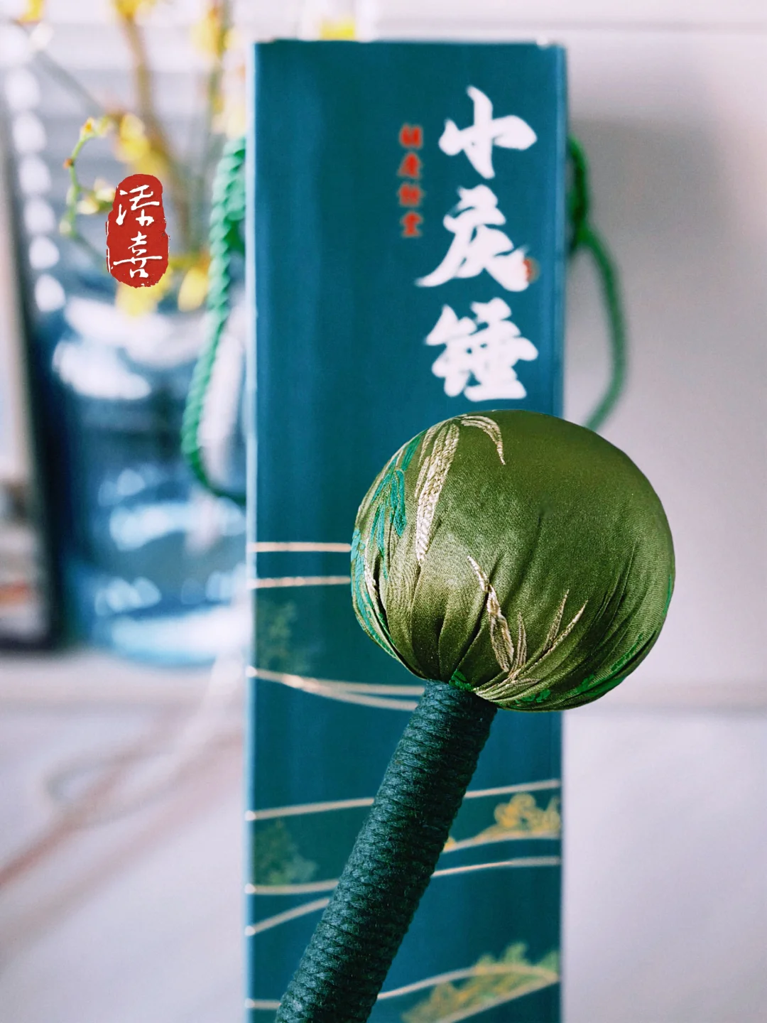 🌟 胡庆余堂小庆锤艾草锤:墨绿色缎面,绣着竹叶,养生女孩必备,敲敲肩颈很舒服
