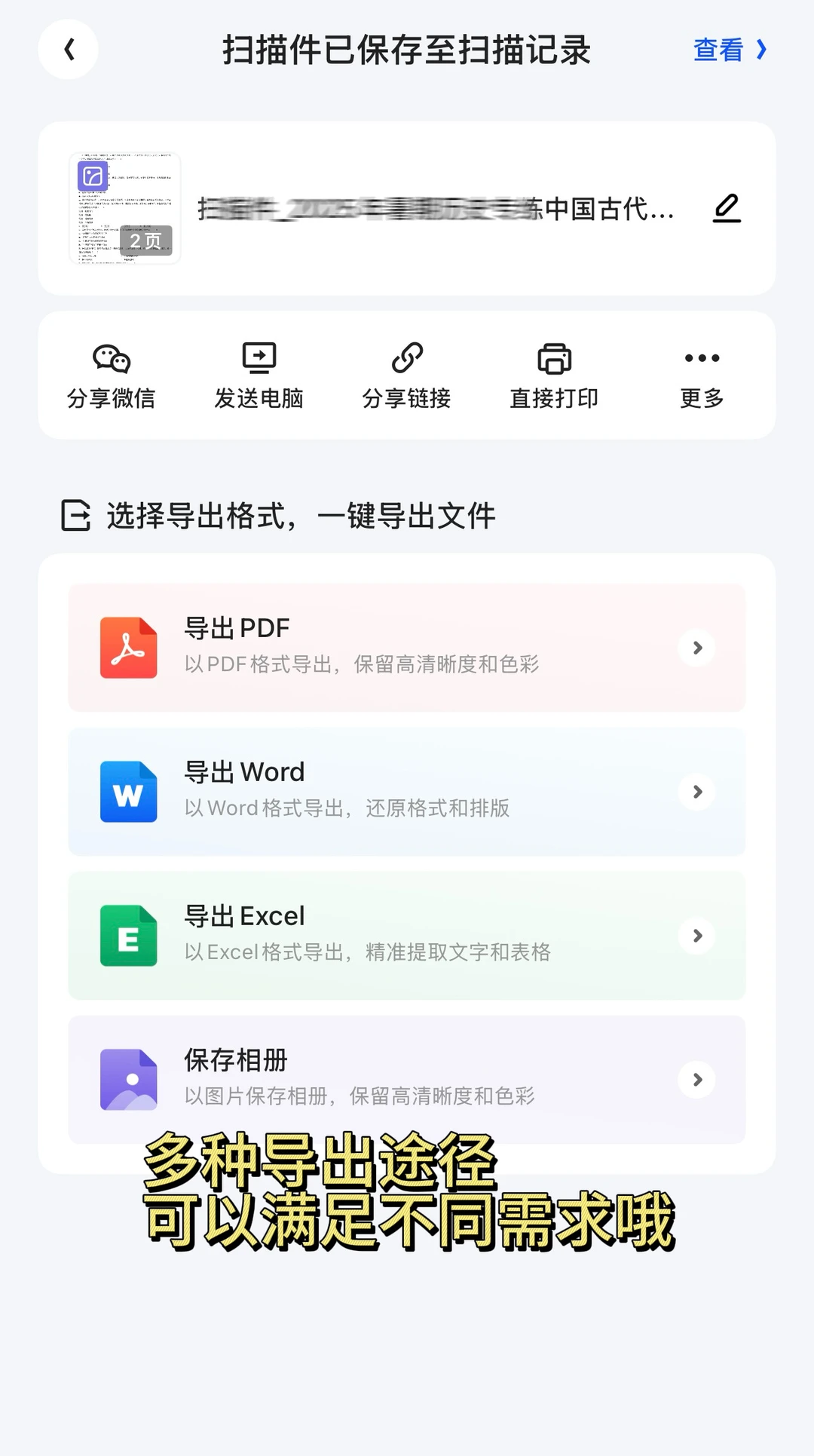 ☑️ 文字/表格提取:扫描后可以精准提取文字、表格、公式,手写体也能精准识别,可以很高效地进行资料的二次使用!