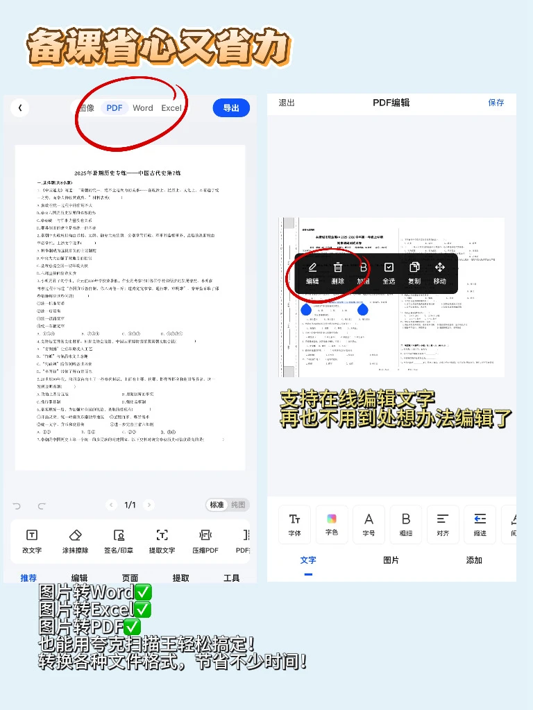 图片转Word、图片转Excel、图片转PDF也能用夸克扫描王轻松搞定!转换各种文件格式,节省不少时间!"
