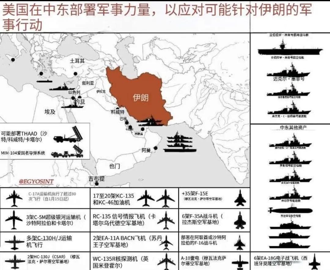 伊朗怕吗?看美军军事部署资产一目了然! 美国近期部署的军事资产不可能对伊朗发起全面战争,伊朗很清楚这一点,所以伊朗也一直舆论施压美国,其目的很简单:就你这点兵力你能打多久? 但是,美国这个规模,如果真的打,伊朗核设施、军事指挥部、石油设施都会遭受毁灭性打击,只是相对伊朗政权而言可能影响没那么大。 但是雪上加霜的经济影响,却会潜移默化影响伊朗当局,这也是伊朗私底下还在和美国谈判的原因。
