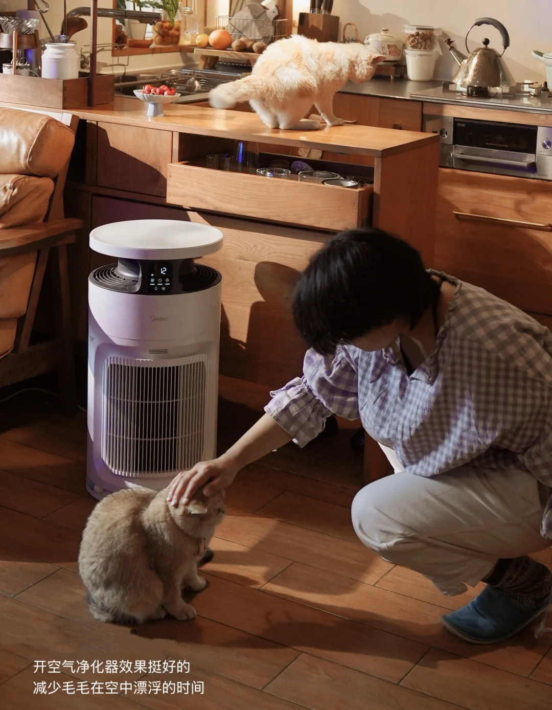 他们一开心就开启全屋酷跑模式,吃饭的时候,空中自动添加蛋白质纤维,交给美的宠物空气净化器解决,它强力吸附空气中和地面上的毛发,半个月后浮毛贴肉眼可见的毛毛,很喜欢这个浮毛贴,沾满了撕下来扔掉换个新的就行,耗材还包终生,好省钱