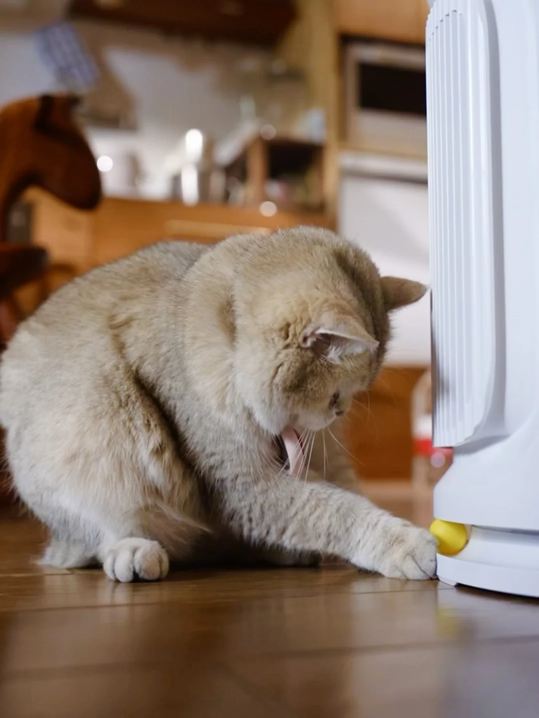 猫猫喜欢待在茶室和猫屋,白天放在茶室,机器底部有可以拆卸的猫抓球专供猫猫玩耍。