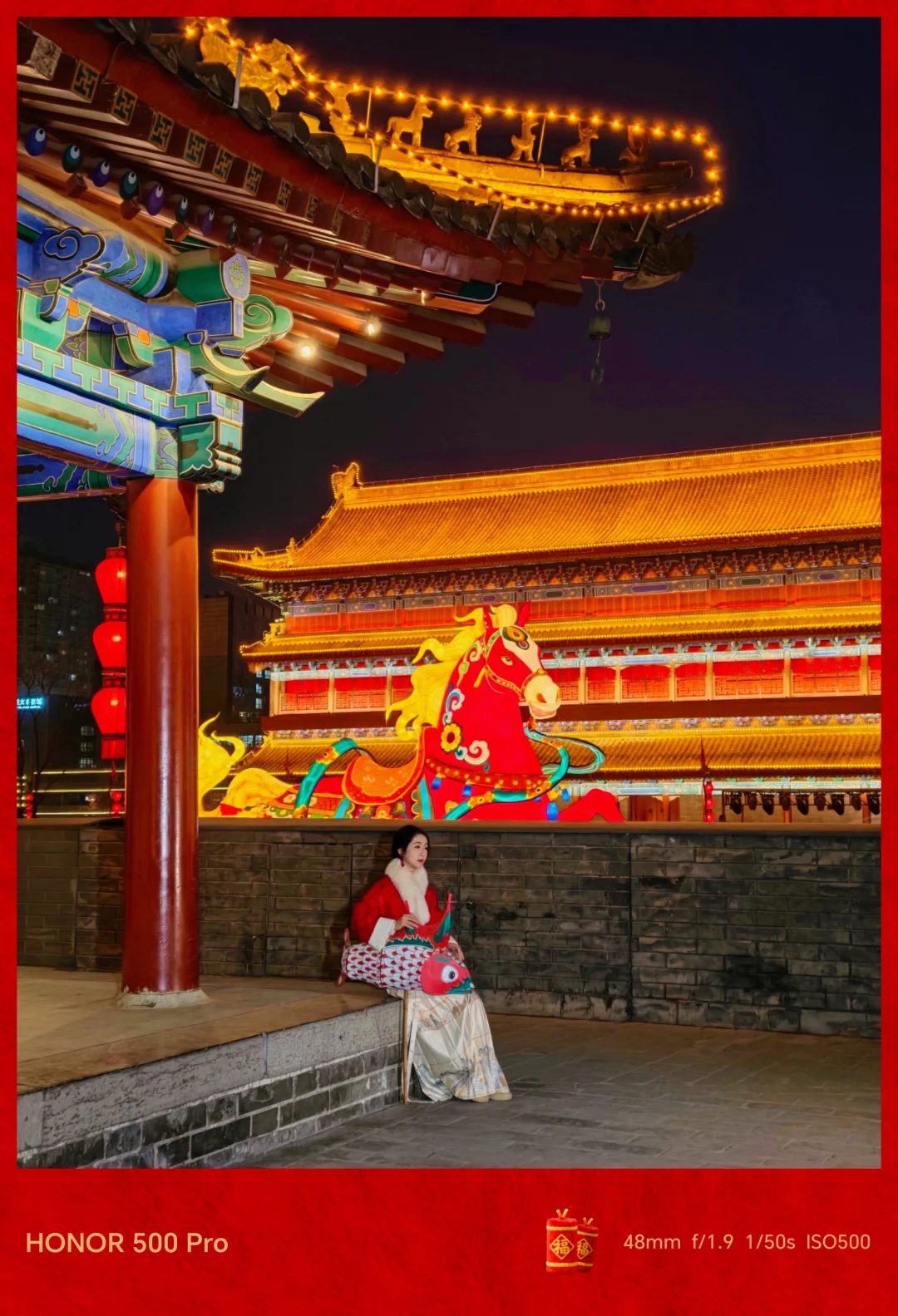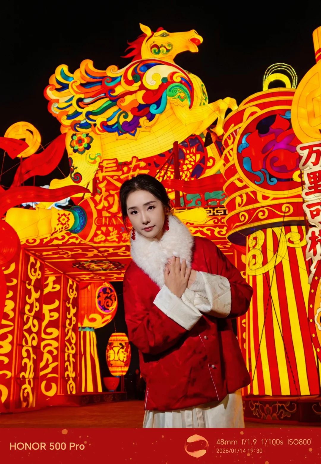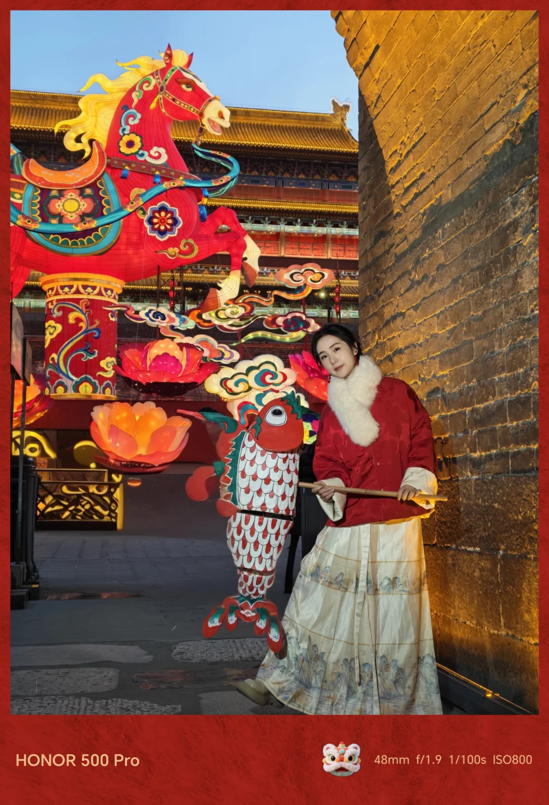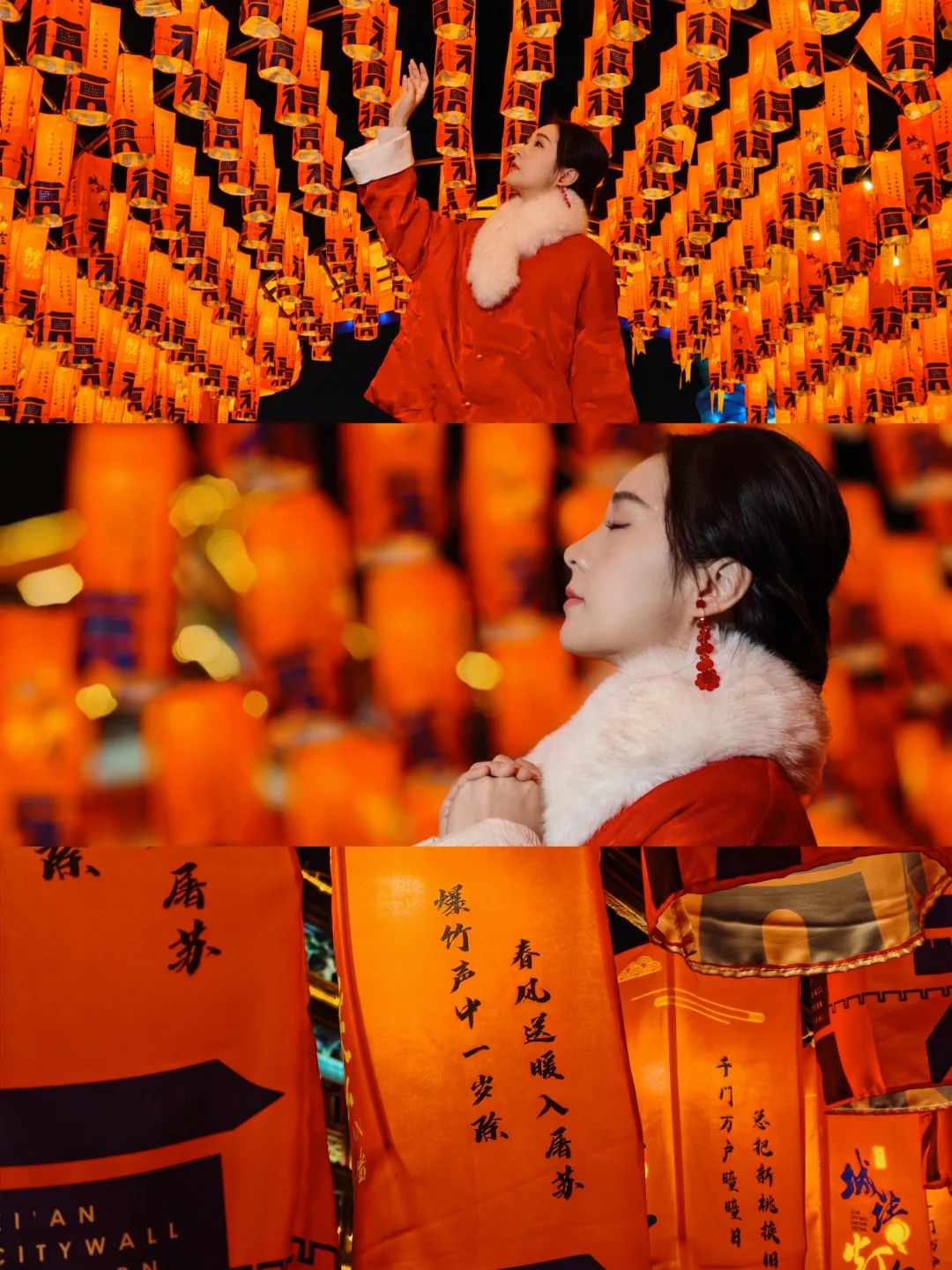 - 可以尝试拍1张景色、1张大景、1张近景或特写,人不看镜头,和花灯自然互动,3张拼接更有故事感