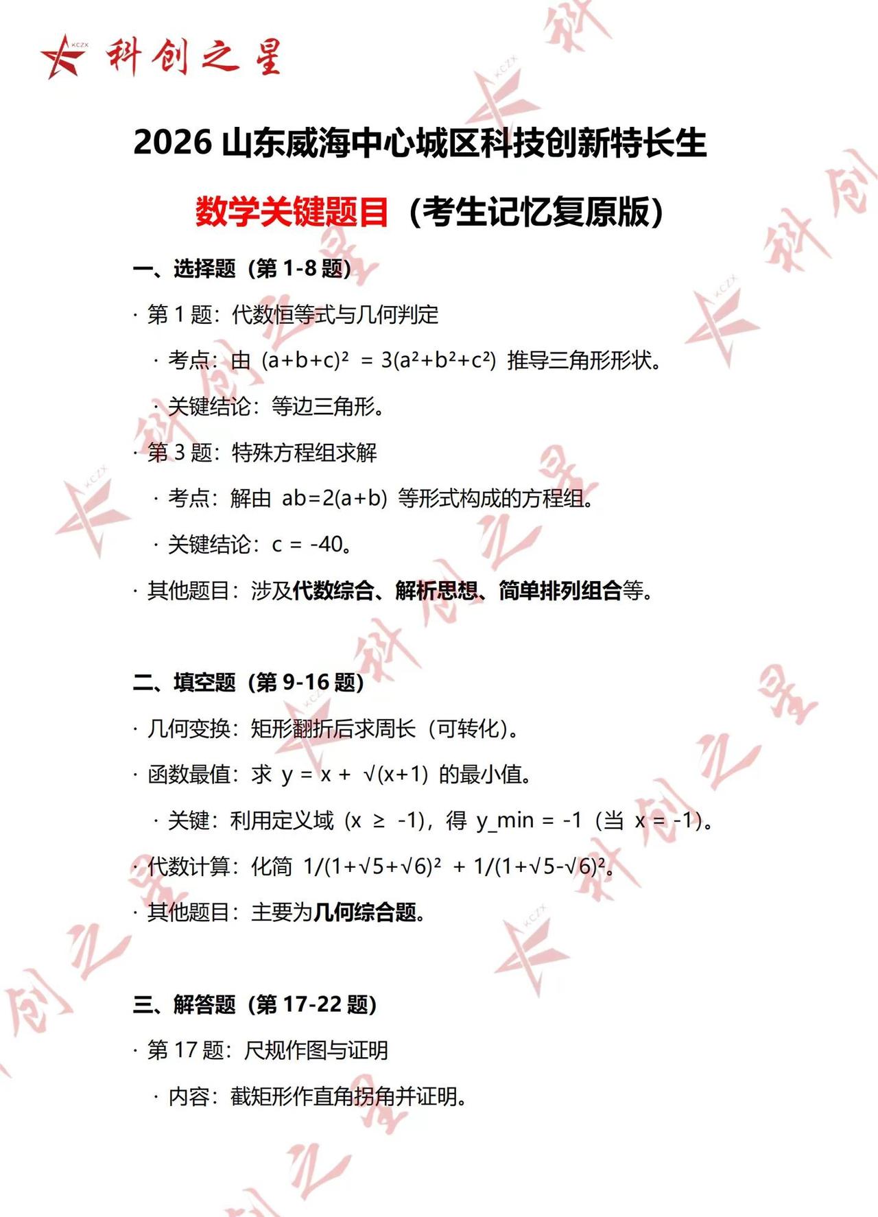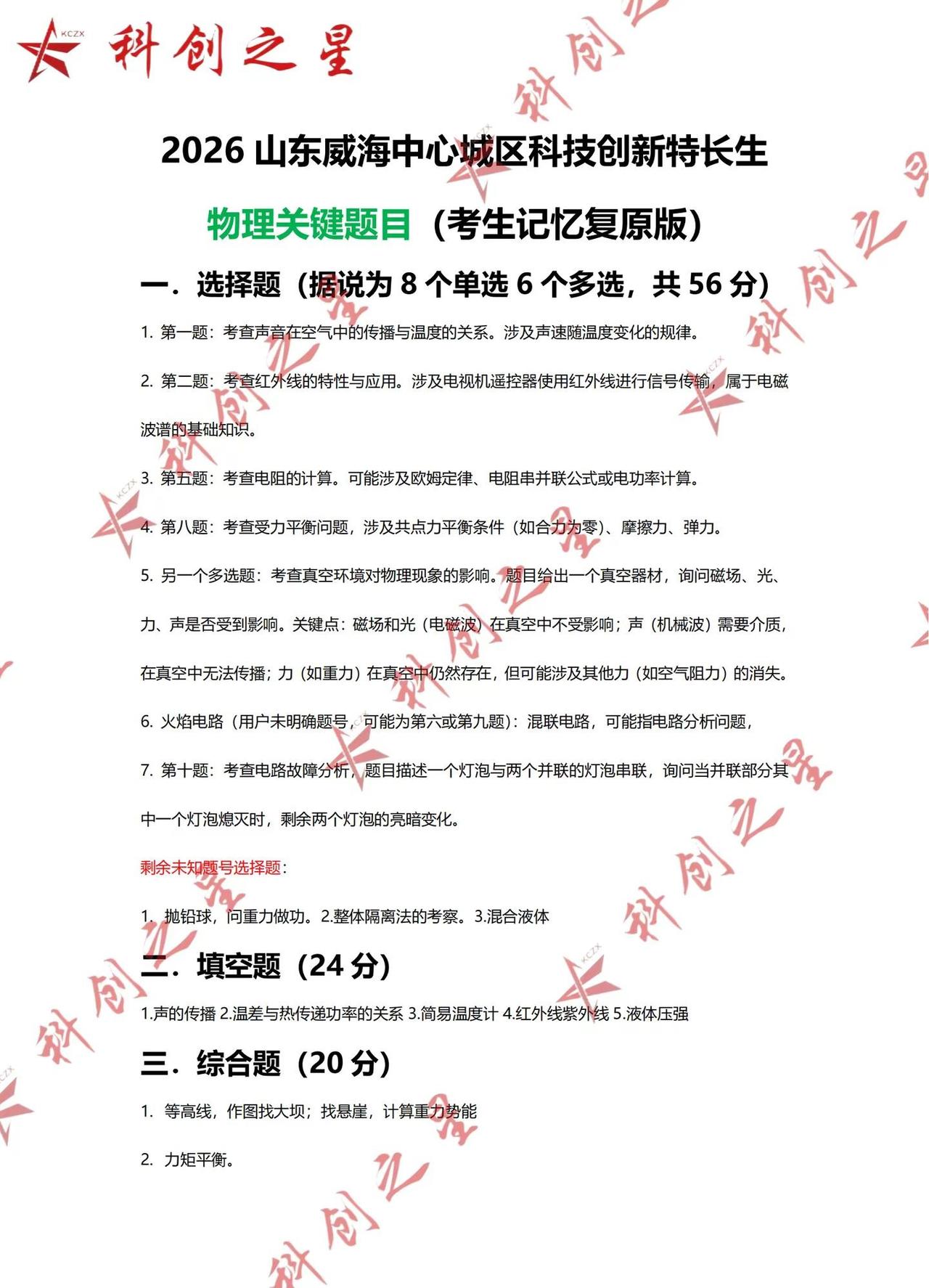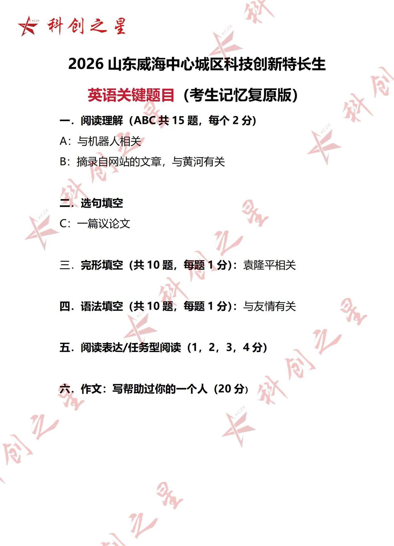 2026威海科技特长生考试四科考生回忆版。2026威海科技特长生考试四科考生回忆版威海科创之星 威海科技特长生