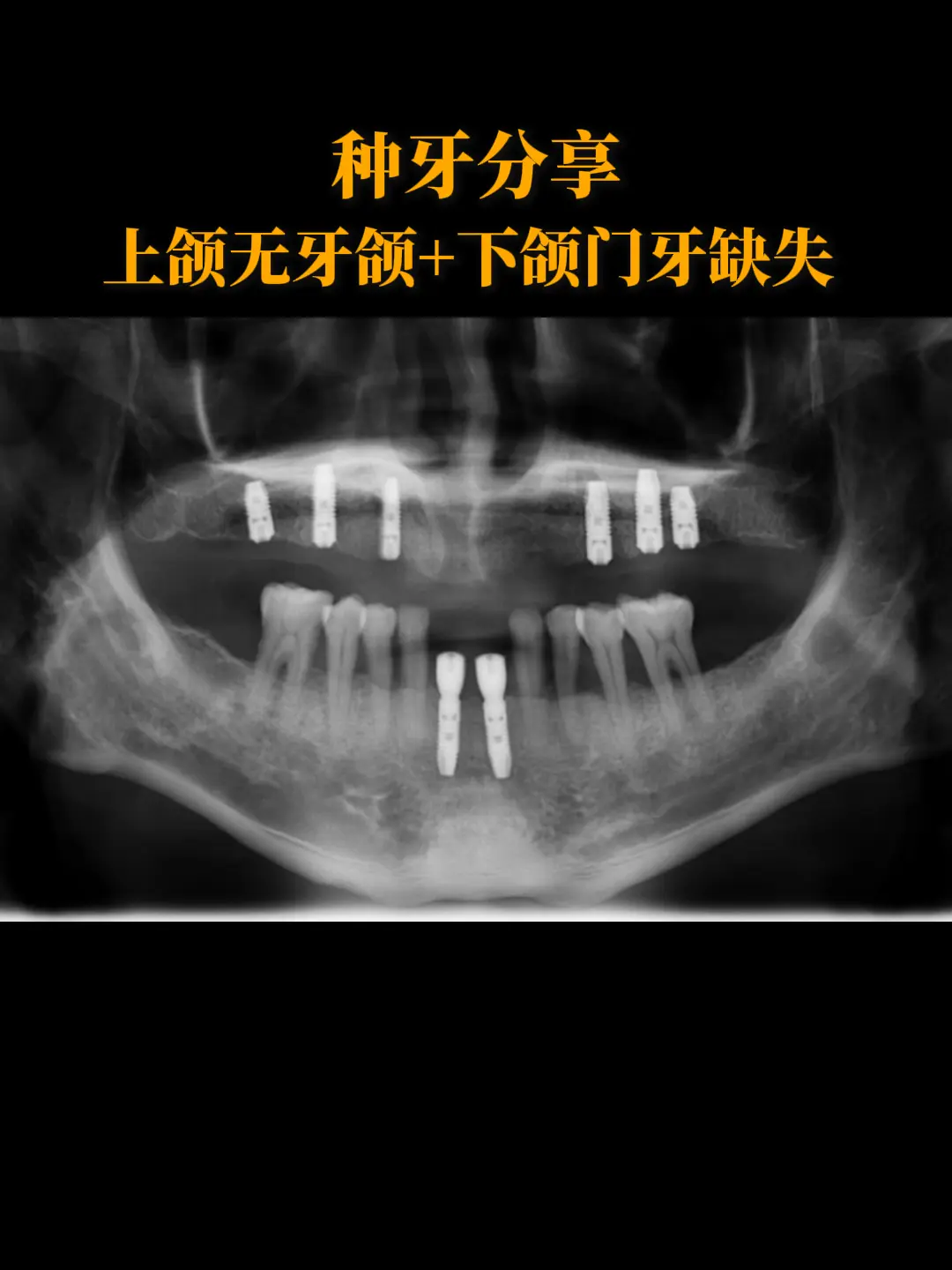 【种牙分享】上颌无牙颌+下颌门牙缺失。这是一位41岁男性患者,他的上下...