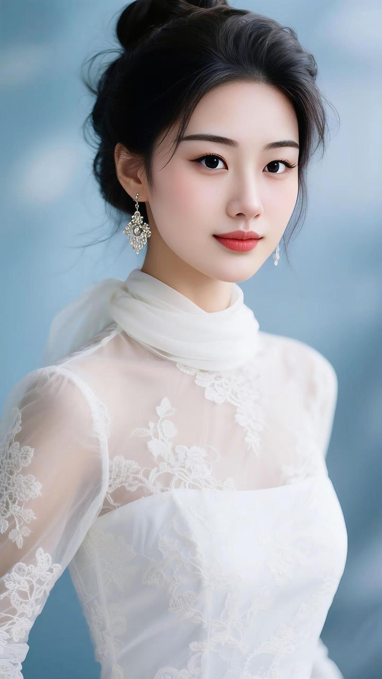“极简白裙+高颅顶丸子头,干净又高级,这才是初恋感的正确打开方式~”氛围感写真