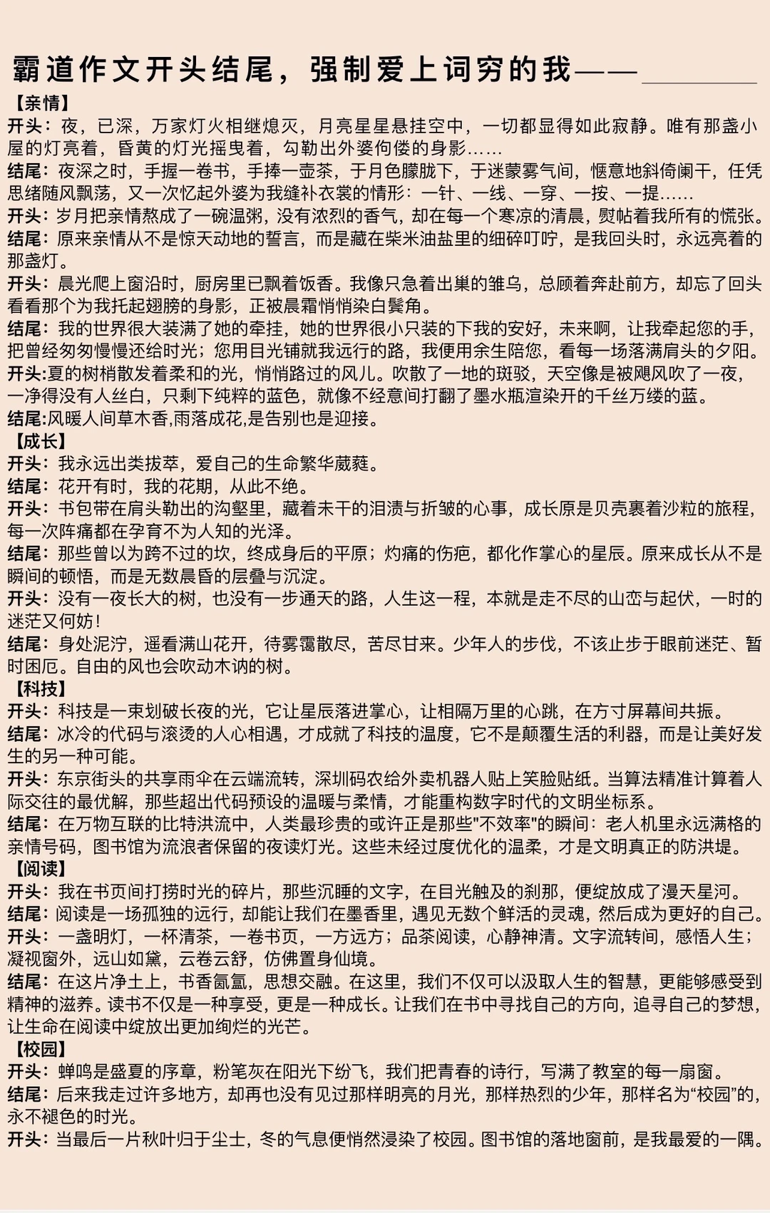 初中语文十大主题作文开头结尾