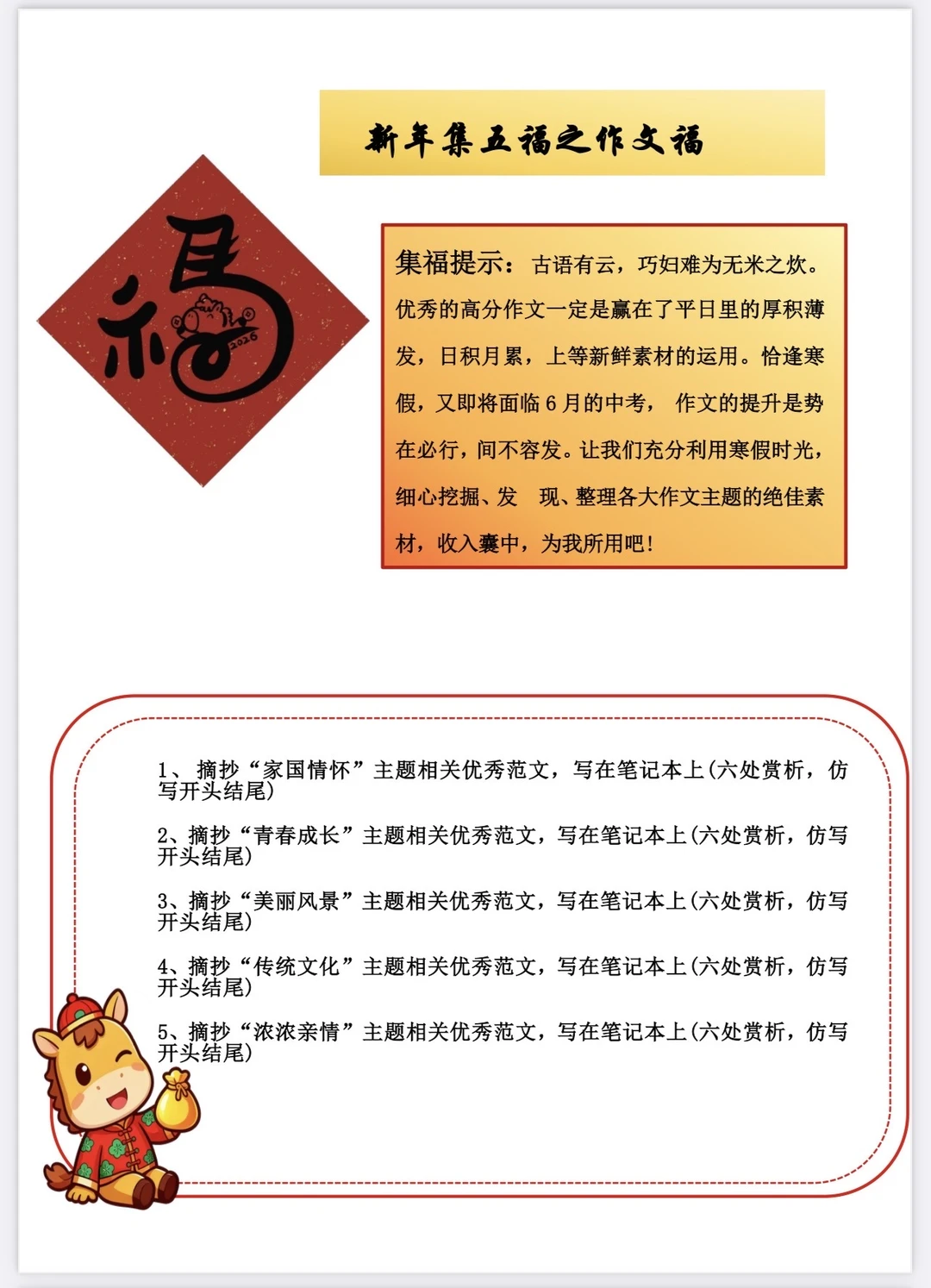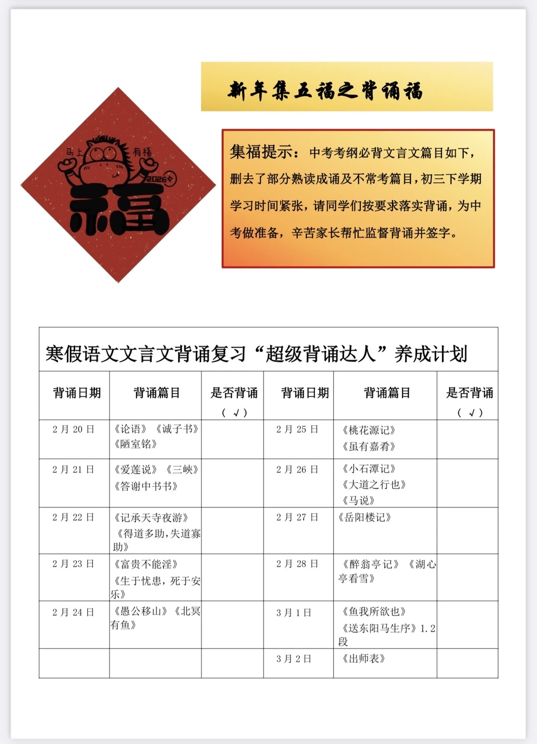 字词/默写福(15次) 名著福(阅读计划) 背诵福(背诵文言文) 作文福(摘抄优秀范文)