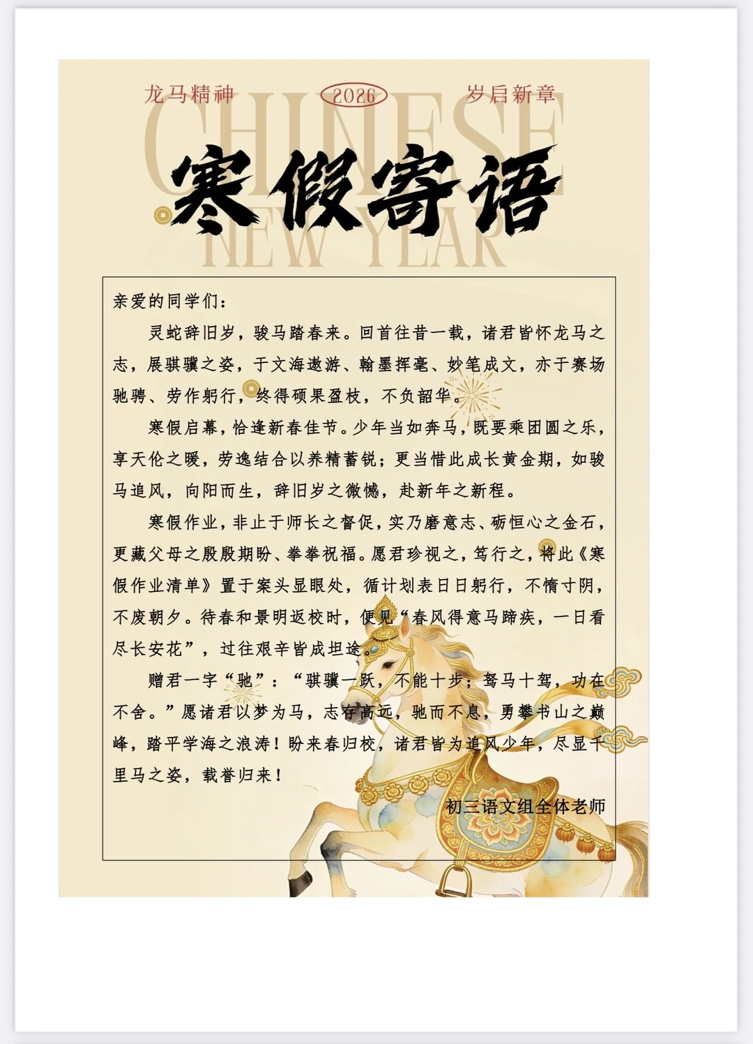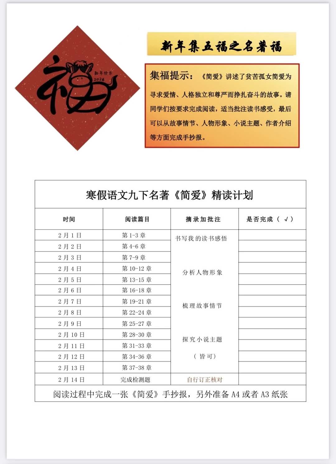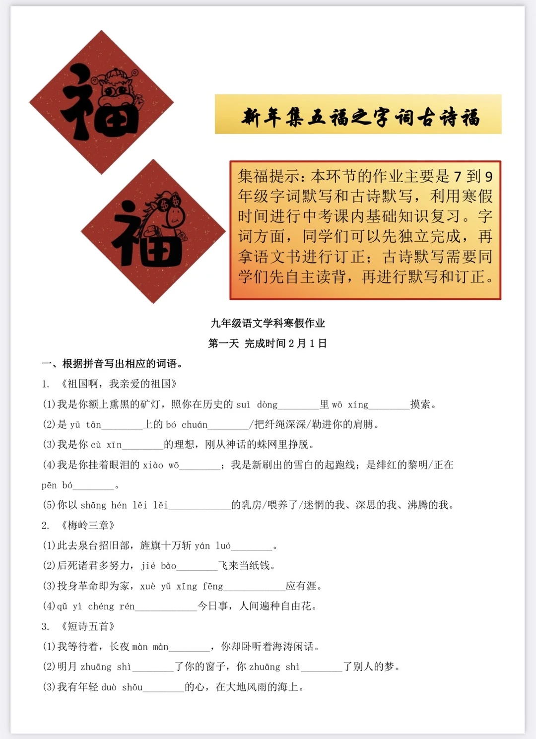 九年级语文寒假作业(集福版)