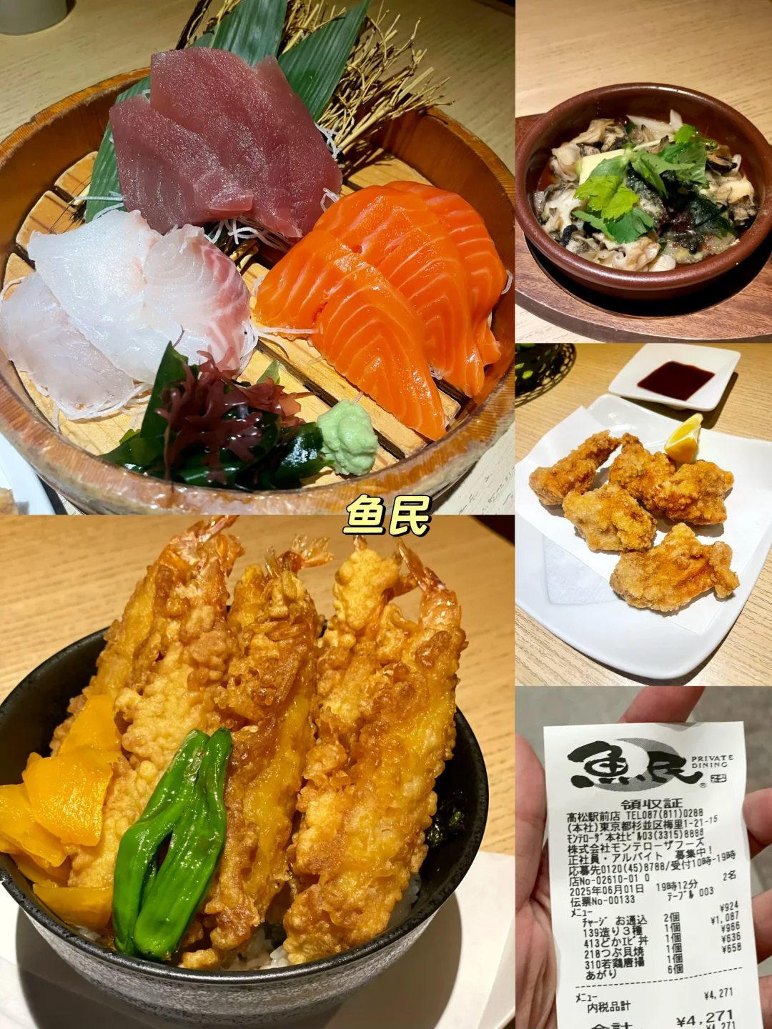 整理相册 发一波高松美食记录! [一R]鹤丸乌冬面🍜p1 排队30分钟才吃上,高松乌冬面扛把子! 推荐咖喱面和天妇罗面,天妇罗虾🍤真的绝。 关东煮自取,也很不错! [二R]浜海道p2 一定要提前预约哦,刺身很新鲜! 还有刺身盲盒,开到了银鱼刺身! [三R]En居酒屋🏮p3-5 第一天浜海道没排上队,于是继续往前走 直接walkin的一家居酒屋 不用排队,但是外国人每人加收500日元💴 很有烟火气,推荐铁板鱿鱼。 [四R]鱼民p6 一家连锁居酒屋店,价格不贵,随便吃吃。 [五R]一鹤骨付鸡p7-8 来高松怎能不吃骨付鸡 ! 晚上9:30以后几乎不排队了,终于拔草了骨付鸡 其实就是带骨头的大鸡腿。🍗 有点咸也有点油,基本就是盐的味道。 [六R]牛角烧肉🥩p9 作为一个牛角爱好者 每到一个新城市就会想去吃当地的牛角 选了最高的档位(和牛自助) 整体人均差不多7000多日元💴 [七R]机场乌冬面🍜p10 关东煮🍢加乌冬面,刚下飞机吃啥都好吃! 天妇罗可以别点,炸蟹柳竟然是冷的! [八R]南咖啡店☕️p11 商店街很隐蔽的二楼咖啡馆 卡布奇诺超精致但也很小杯,吐司🍞很松软。