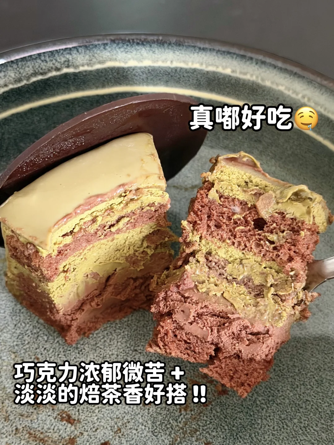 这真嘟是Hojicha和巧克力控都会心动的梦幻组合吧!又挖到了🏠宝藏蛋糕坊了🥹 Hojicha Chocolate 💰128 6inch 大概6-8人吃没问题~ 这组合属于小众蛋糕口味!选的时候就看中了这款😲而且他们家的是用Niko Neko家的Houjicha粉做的😍 焙茶味道香!而且巧克力敲浓derrrrr✨入口就有微甘的可可香~ 喜欢他们的蛋糕不甜腻 干湿度刚好🤤🤤 我是在some.cakery入的哦🥳