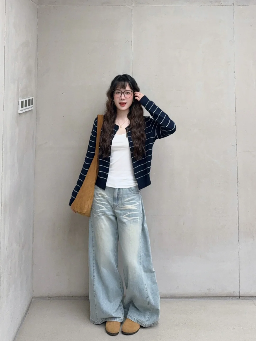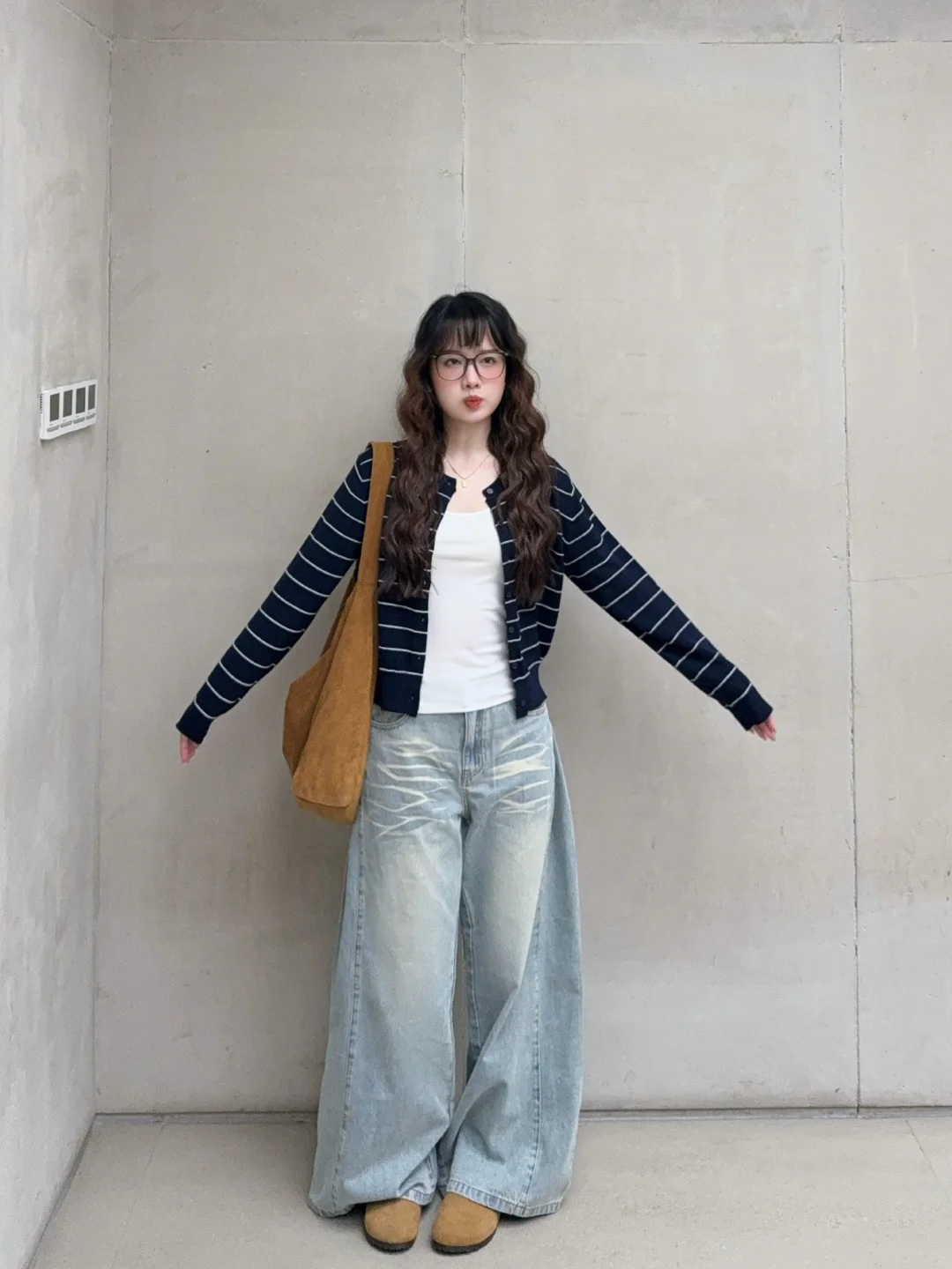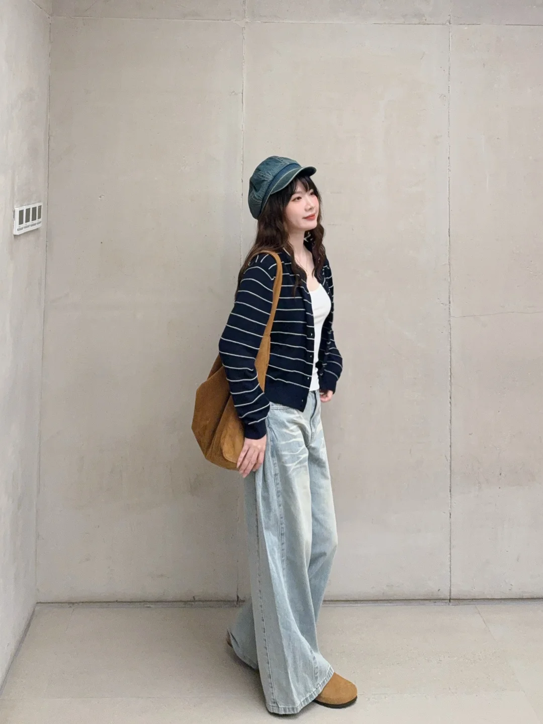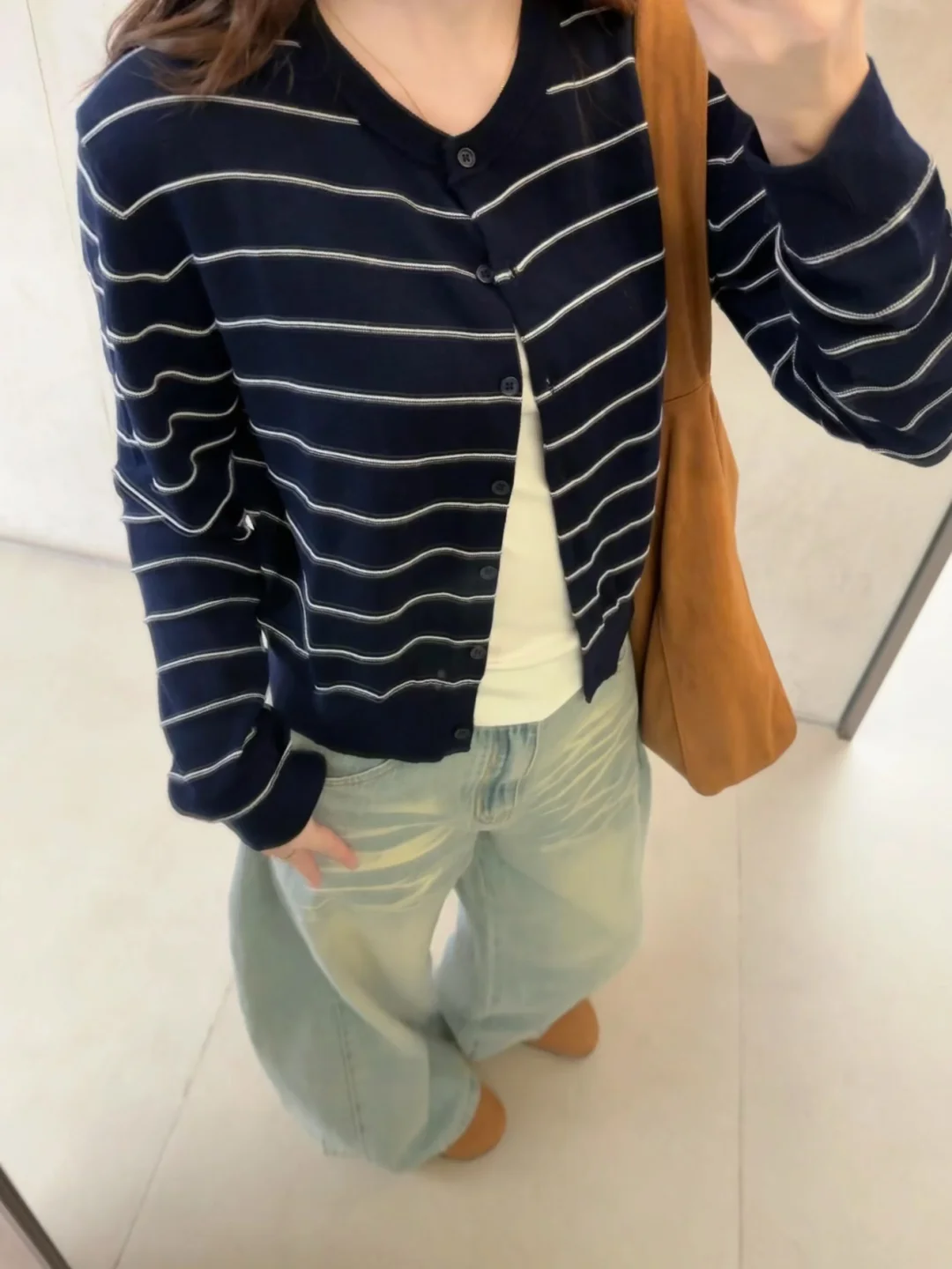 168/106 噜噜噜小蛋卷头重出江湖!! 很久没有做这个造型了还是挺喜欢的 很适合秋冬的蛋卷头~~ 这套我真的很爱 完全是我的风格~ 简单松弛通勤感 很日常又很耐看🫰🏻 类似的条纹针织开衫搭配宽松的拖地裤也很好看 卡其色棕色复古蓝复古绿或者米白色的下装都可以 也可以搭配A字短裙➕袜套/小腿袜➕勃肯鞋/小皮鞋 这套搭配德训鞋或者乐福鞋也是可以的 反正就是 很喜欢呀很喜欢🤫