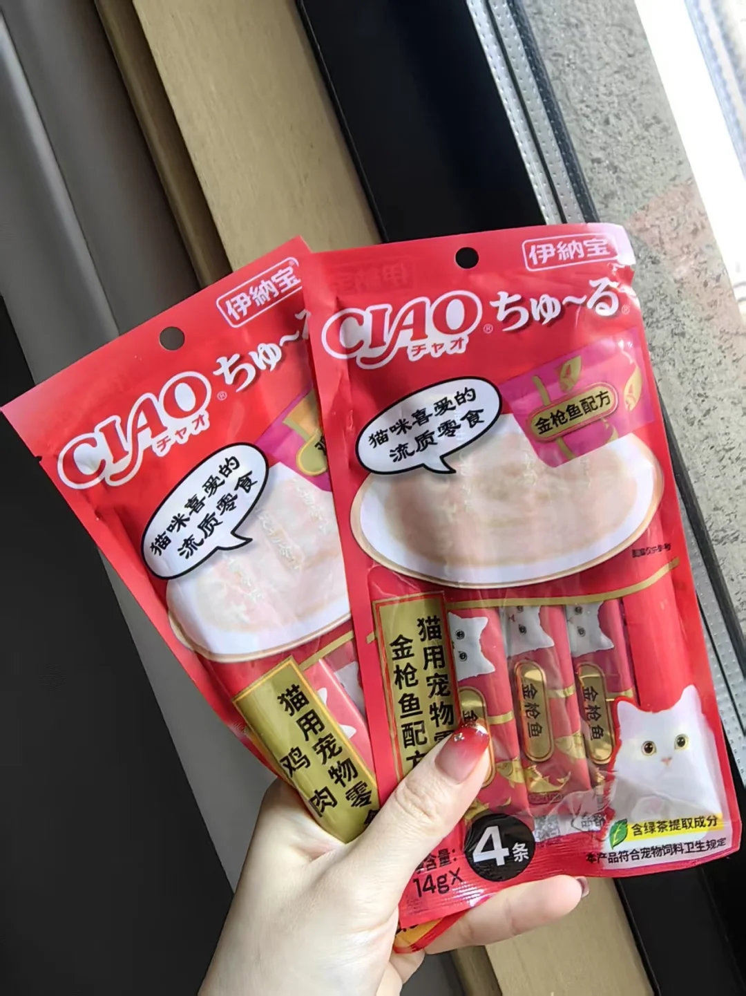 伊纳宝啾噜猫条,口碑和品质都很好。猫条选用天然食材制作而成,不含添加剂及防腐剂~~