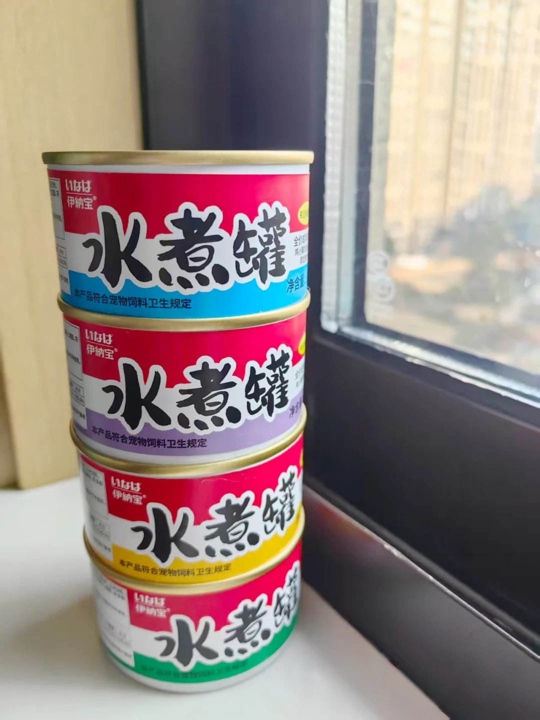 - 水煮罐装,锁住鲜味和营养,汤汁还能给猫咪补水