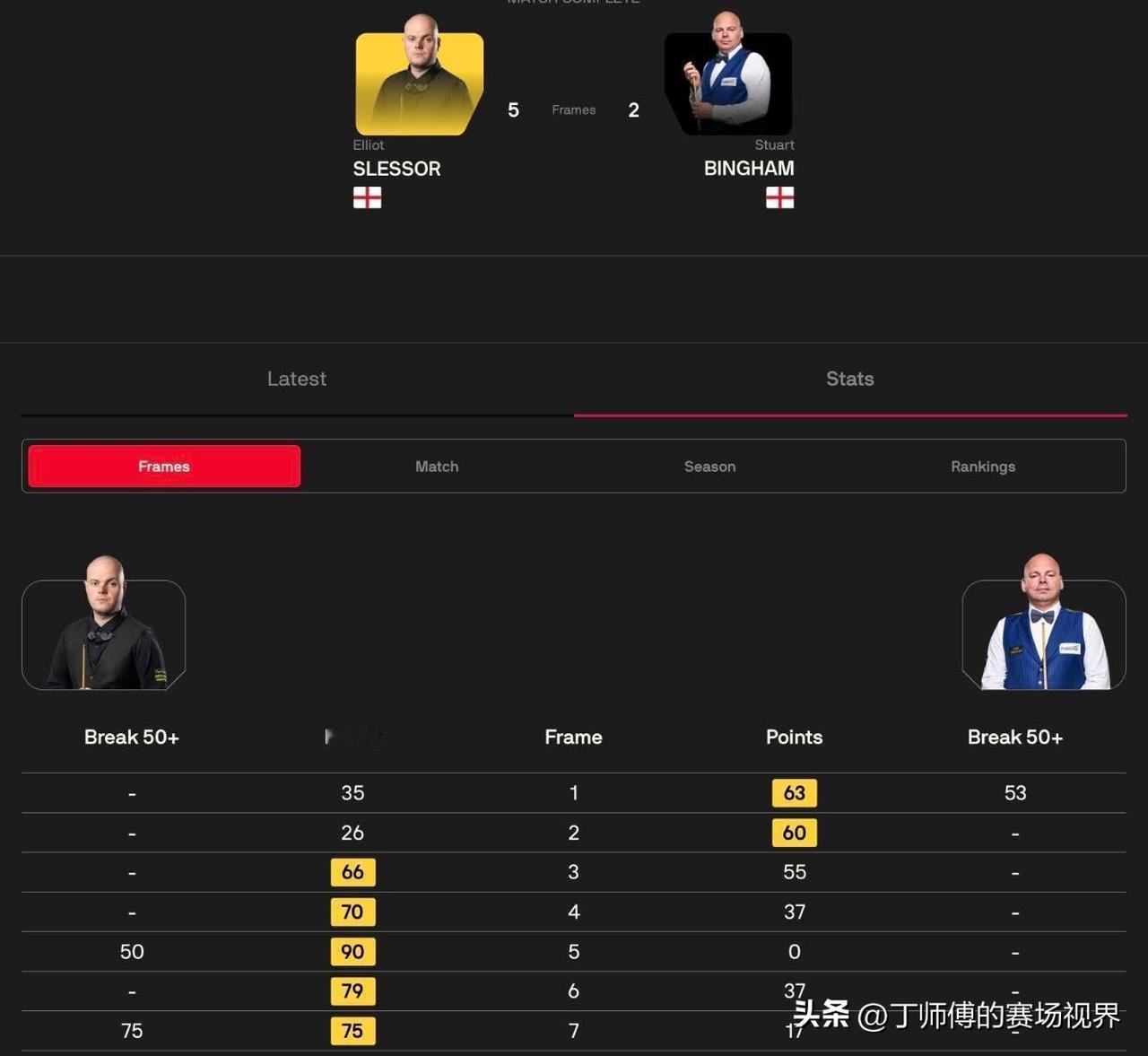 斯诺克世界大奖赛第一天最新战况:塞尔比上演横扫,肖国栋淘汰世界第二,携手周跃龙晋级! 塞尔比在今年世界大奖赛首轮比赛中表现出色。这位二号种子选手打出了60分、100分、82分、94分和76分的单杆高分,以5-0横扫首次参赛的亚伦·希尔。 肖国栋同样手感火热,上半场取得3-1的领先,全场比赛打出87分、86分、50分和54),以5-2的比分战胜世界排名第二的凯伦·威尔逊晋级16强。 世界大奖赛首日比赛结果: 马克·塞尔比 5-0 亚伦·希尔 周跃龙 5-2 斯蒂芬·马奎尔 肖国栋 5-2 凯伦·威尔逊 埃利奥特·斯莱瑟 5-2 斯图尔特·宾汉姆 斯诺克赛事安排 斯诺克排名