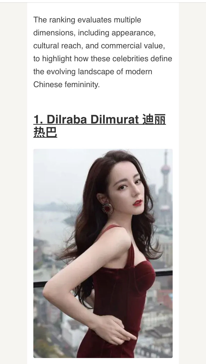 根据Maomaohype的数据,海外娱乐媒体最新榜单——迪丽热巴被评为2025年中国最具影响力的女演员第1名 。👍🏻👍🏻👍🏻👍🏻🌸🌸🌸🌸热巴的国际影响力在上升……