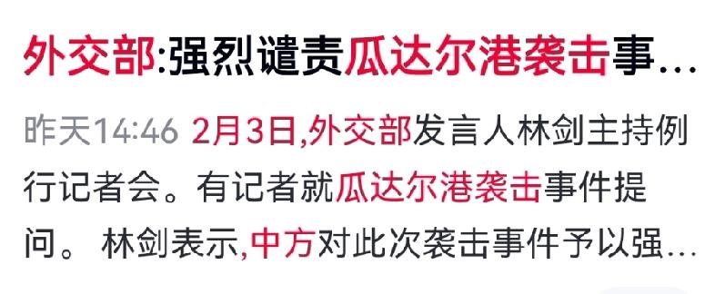 2月3日,巴基斯坦奎达、瓜达尔港遭遇恐怖袭击,造成重大伤亡。中方外交部第一时间予