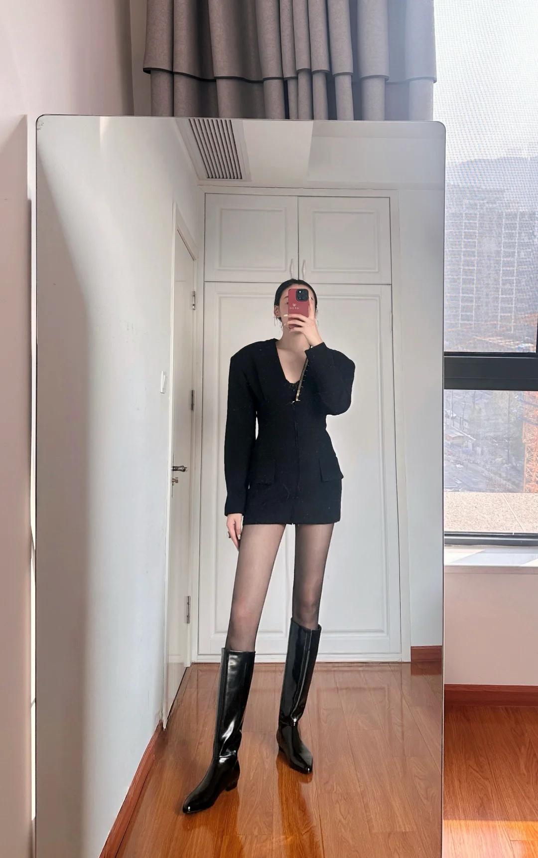 米色防水台高跟过膝靴。过膝靴穿搭辣妹穿搭大赏创作者中心创作灵感