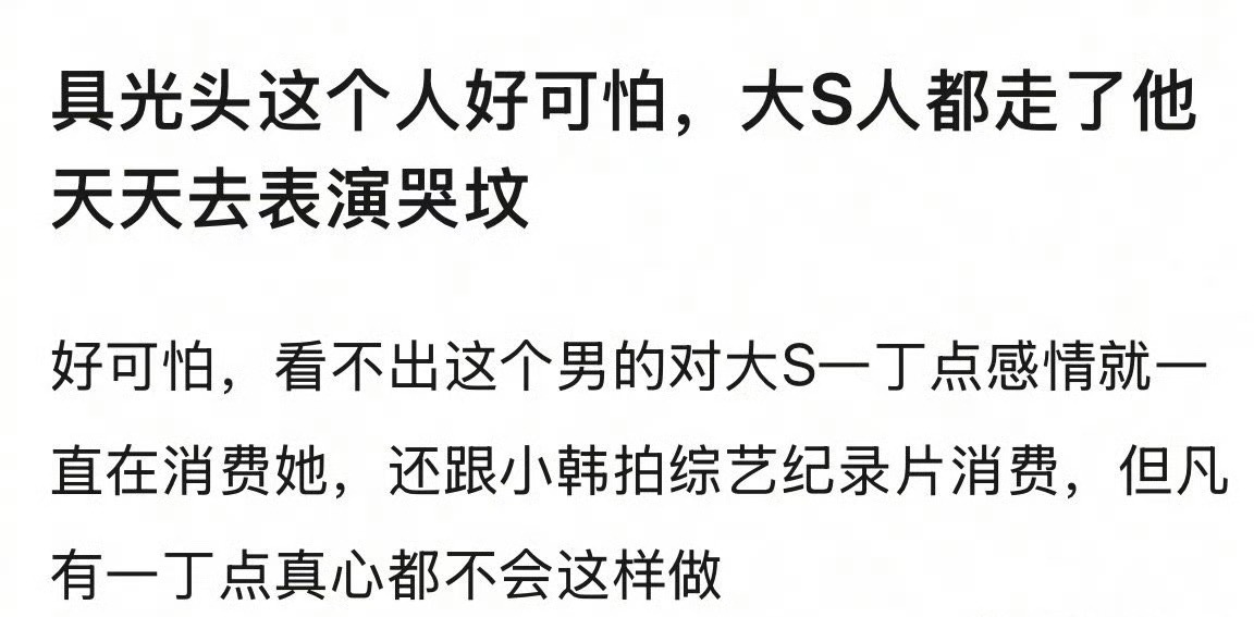 具俊晔队友说,在休息室看到具俊晔边听歌边哭,还在纸巾上写满了大S的名字。
