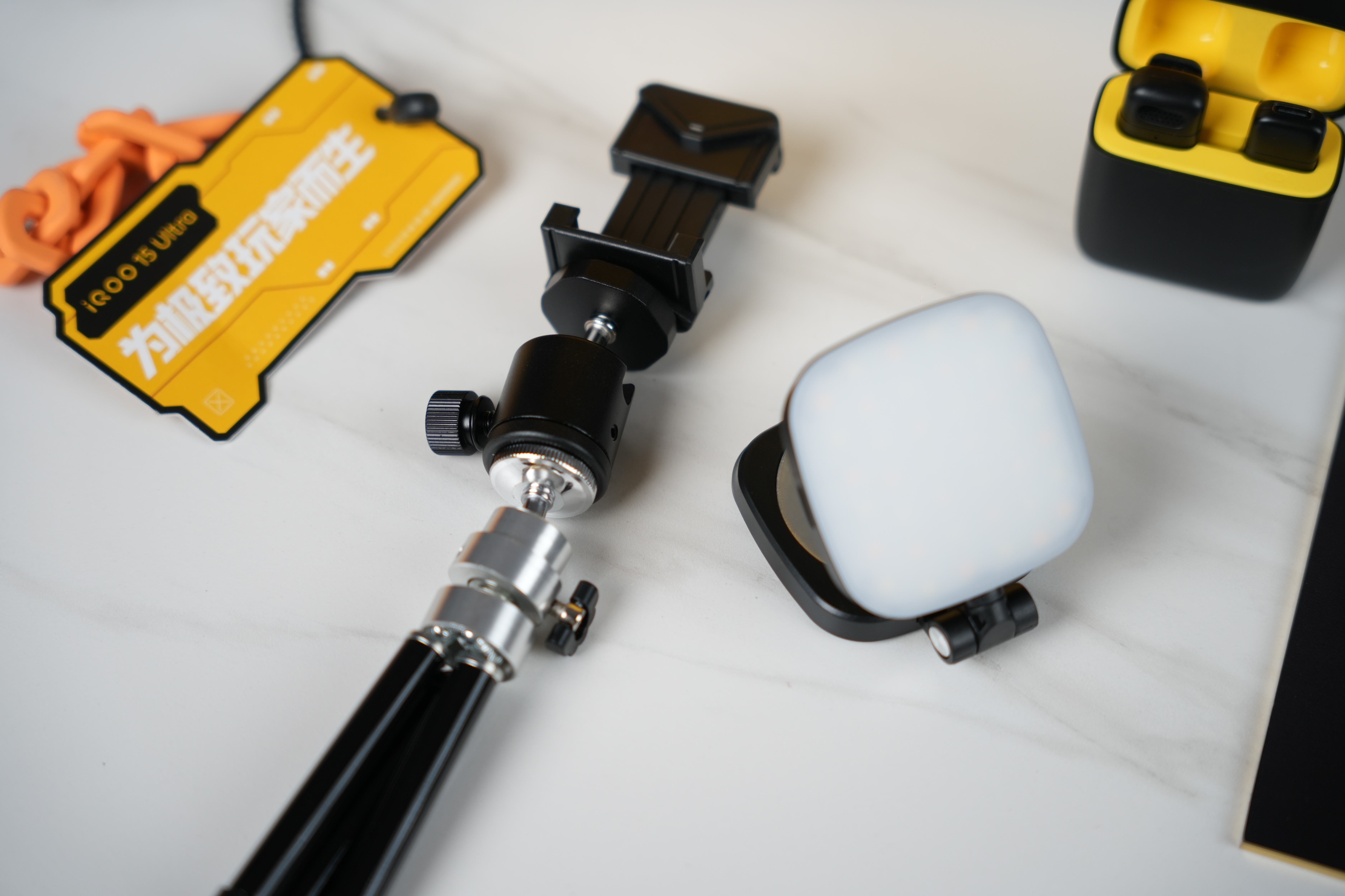 iQOO15 Ultra的邀请函也是够硬核的,三脚架、麦克风以及补光灯,都给整了一套。