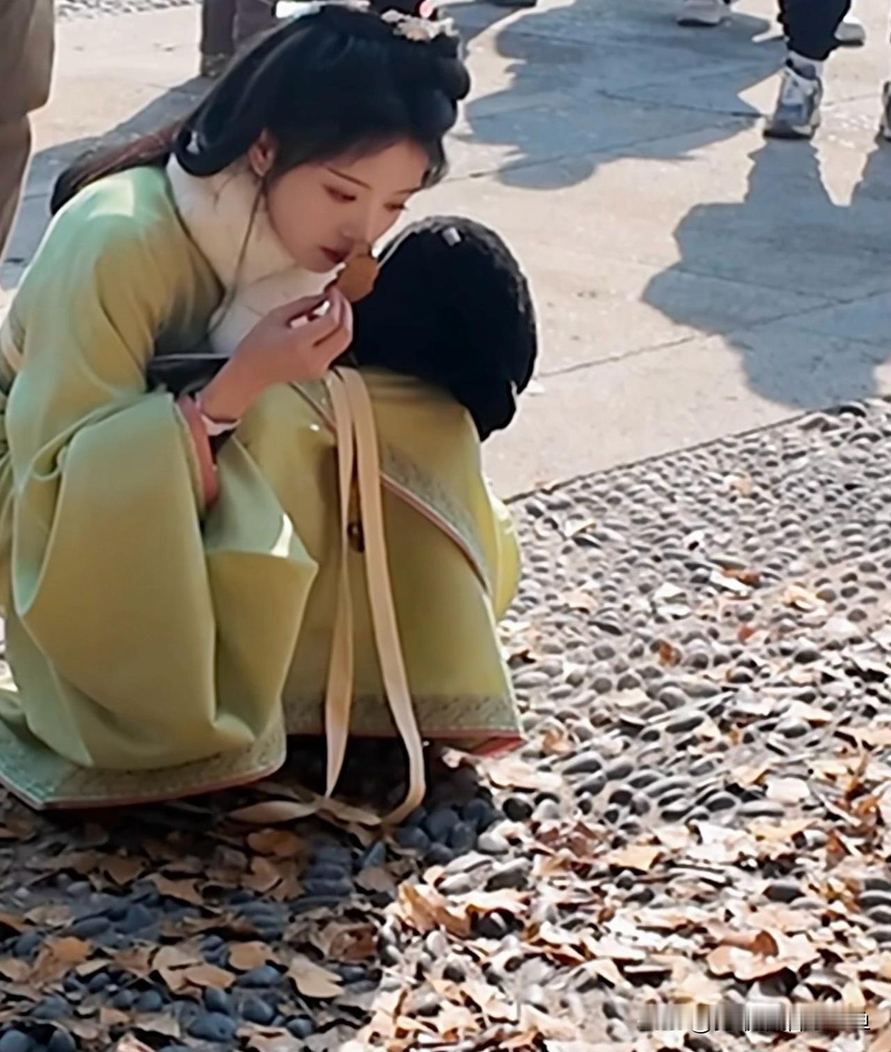 刘亦菲一看就是健身的,蹲下去的姿势太标准了