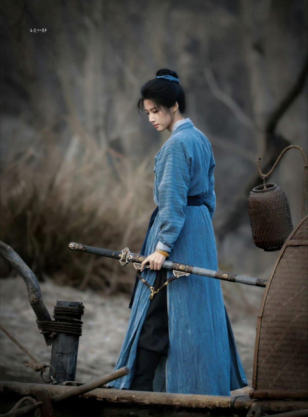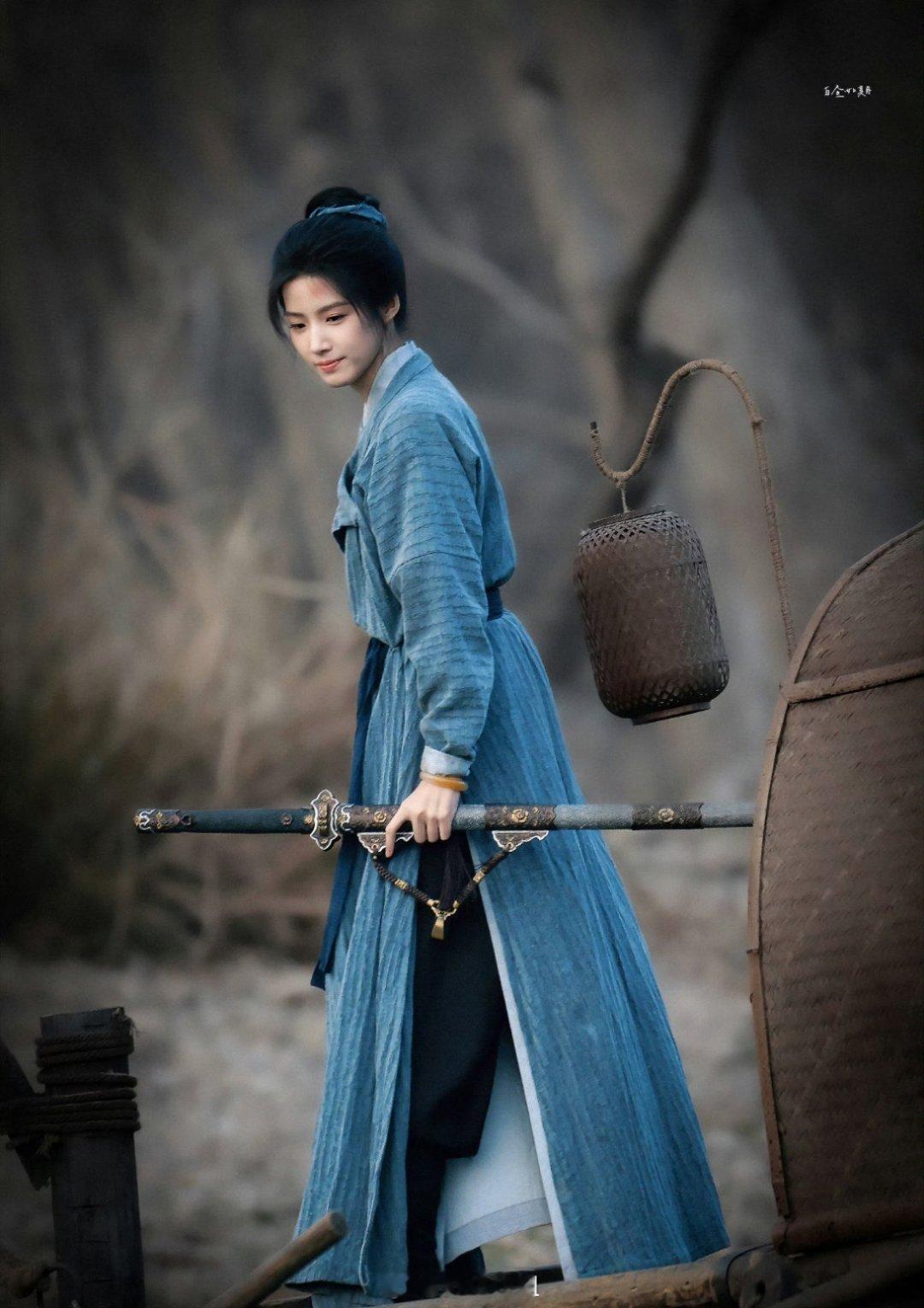卢昱晓主演的《何不同舟渡》最新侠女妆造,一身蓝色古装,手拿长剑,侠女的气质你能get到不?