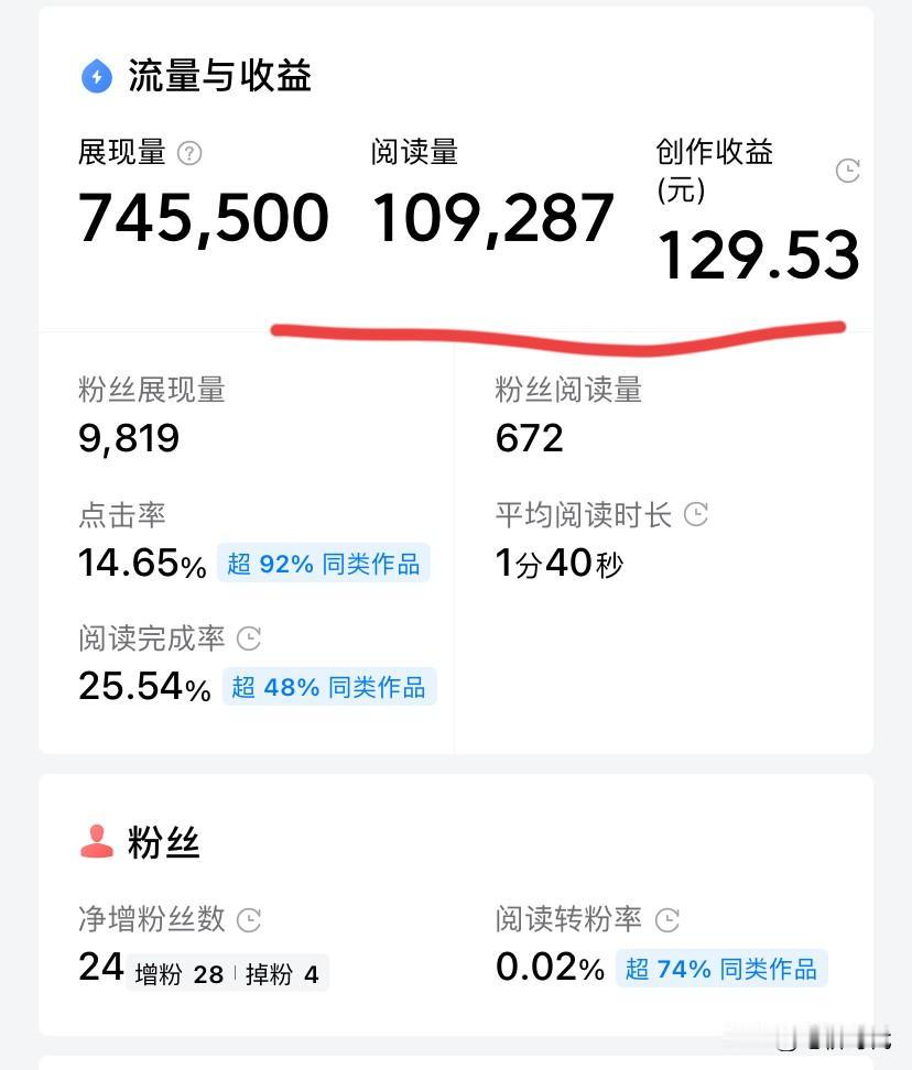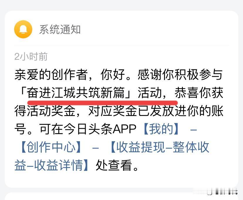 真是白高兴一场!昨日阅读量只有3000多,可一看收益有整整40元。简直吓我一跳!根本不敢相信有这么高的单价! 要换作半年前,一万阅读量有三位数的收益也不奇怪。我记得已经好长一段时间单价很低迷了。都已经失去信心了。 要知道前天阅读量10万多的一篇文章收益只有120多元,足以让我提不起精神写作。 今天翻看昨日的阅读数据,只有3000个,想想最多也就两三块。哪有动力啊! 下午时无意瞥见收益一栏里的数字,好像有40这个数字,起初以为看错了,翻过去又看了一遍,还真的是。 于是我在琢磨这3000多的阅读量,也就是那篇十万的文章的尾流。根本不可能有这么高的单价。这到底是怎么回事? 再翻看消息私信发现有个系统通知,要是平常我都不屑一看,参加话题的活动奖金一般只有几毛,几块都了不得了。 但这次这个话题活动很陌生,记得随意只参加过一次,竟然有40元奖励,实在是想不到。 头条写作真的太卷了!有时一天发布几篇才几块钱,只随意动动手参加个话题就得到几十元。 虽然只有40元,但我的心情一下子舒畅了,瞬间又增添了一丝写作的动力。
