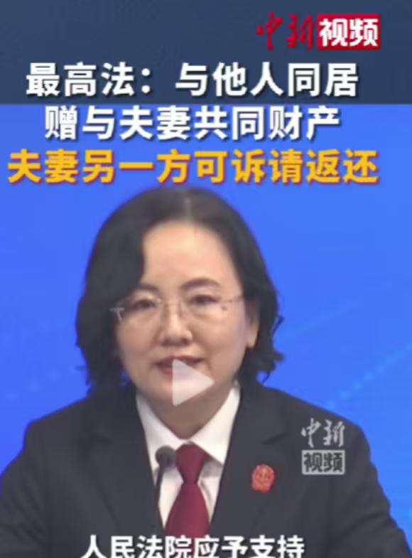 “小三”一觉醒来天塌了!最高法院宣布:自2025年2月1日起,如果已婚的人在外和人同居,将夫妻共同财产送人的话,是没有法律效力的,原配可以追回,法院也会帮忙要回来。 这个规定可是最高人民法院2024年11月25日审议通过的《关于适用〈中华人民共和国民法典〉婚姻家庭编的解释(二)》,这个文件从2025年2月1日开始正式施行,里面就有专门的条款,管的就是已婚者偷偷送小三财产这件事。 有人可能会问,以前就没有相关法律吗?有是有,但以前的规定没这么明确,也正因为这样,以前很多原配维权都吃了哑巴亏。 那些出轨的人,仗着大家不懂法,偷偷把夫妻共同财产往小三身上砸,买房子、买车子、转现金,样样都来。 等原配发现了,去找小三要,小三嘴硬得很,一口咬定“这是他自愿送我的,跟你没关系”;去找出轨的人理论,对方更是翻脸不认人,说“我送的是我自己的那份钱,轮不到你管”。 更让人揪心的是,有些原配真的信了这些鬼话,以为真的只能要回一半,再加上觉得维权太麻烦,干脆就认栽了,看着自己辛辛苦苦攒下的家产,被别人白白拿走,有苦说不出。 还有些原配不甘心,花了大把时间和精力跑法院,最后却只拿回一半财产,剩下的那一半,就这么打了水漂。 但从2025年2月1日起,这种憋屈事儿就彻底翻篇了。 这个新的司法解释里说得很清楚,夫妻一方要是因为重婚、跟别人同居,或者有其他对不起婚姻、违反夫妻忠实义务的行为,把夫妻共同财产送给别人,另一方就可以说这个赠送行为不算数,去法院起诉要回财产,法院都会依法支持,帮着原配把财产全额追回来。 为啥以前总有人觉得只能要回一半,关键就在夫妻共同财产到底是不是“各占一半”。大家都有个误区,觉得没离婚的时候,夫妻共同财产就是你一半、我一半,一方有权处理自己的那一份。 其实不是这样的,没离婚之前,夫妻共同财产就是夫妻俩共同拥有的,一方不能偷偷做主处分自己“那一半”,必须得夫妻俩商量一致才行。 并不是说家里的钱真的没有份额,只是没离婚的时候不能随便分割,等真到了离婚那一步,还是会按照相关规定分割份额的。 说白了,只要没离婚,家里的工资、奖金、做生意赚的钱,还有买的房子、车子、首饰,不管登记在谁的名下,只要是夫妻俩一起努力挣来的,大多都是夫妻共同财产。 这种共同财产,得夫妻俩都同意,才能送给别人,一方偷偷做主送出去,哪怕是送给自己的亲戚朋友,都是无效的,更别说送给跟自己同居的小三了,这种行为不光不道德,更是违法的。 当然也不是已婚的人送出去的所有东西,原配都能要回来。只有用夫妻共同财产送的,不管是因为同居、重婚,还是其他违反夫妻忠实义务的行为送的,原配都能全额要回来。 要是送的是自己的个人财产,比如婚前自己买的房子、继承的遗产,而且没跟夫妻共同财产混在一起,这种情况下,原配就不能要求返还,毕竟那是对方的个人财产,有权自己处理。 还有一点,就算小三哭着说自己不知道对方已婚,是无辜的,也不能成为不返还财产的理由。 只要是无偿接受的财产,比如免费送的房子、车子、转账,不管小三知不知道对方已婚,原配都能要回来;除非小三是花了合理的价钱买的,而且确实不知道对方已婚,这种情况下,可能要不回实物,但原配可以要求出轨的一方赔偿自己的损失。 以前很多小三,以为能靠着已婚的人发家致富,觉得就算原配发现了,也只能要回一半,自己至少能留一半。 但从2025年2月1日起,这种侥幸心理可以彻底打消了,只要接受了已婚者送的夫妻共同财产,不管多少钱、多少东西,原配都能全额要回来,到时候,小三不仅拿不到一分钱,还可能惹上官司。 而原配们,以后再也不用忍气吞声、被人忽悠了。要是发现配偶在外同居,还偷偷送财产给小三,一定要第一时间保留好证据,比如转账记录、聊天记录、房产车辆信息,还有对方同居的证据,然后去法院起诉,法院会帮着全额追回财产。 婚姻得讲忠诚,夫妻共同财产也得夫妻俩一起守护。不管是已婚的人,还是想介入别人婚姻的人,都得明白,法律不会纵容不道德、不合法的行为,原配的合法权益,永远会被法律保护。