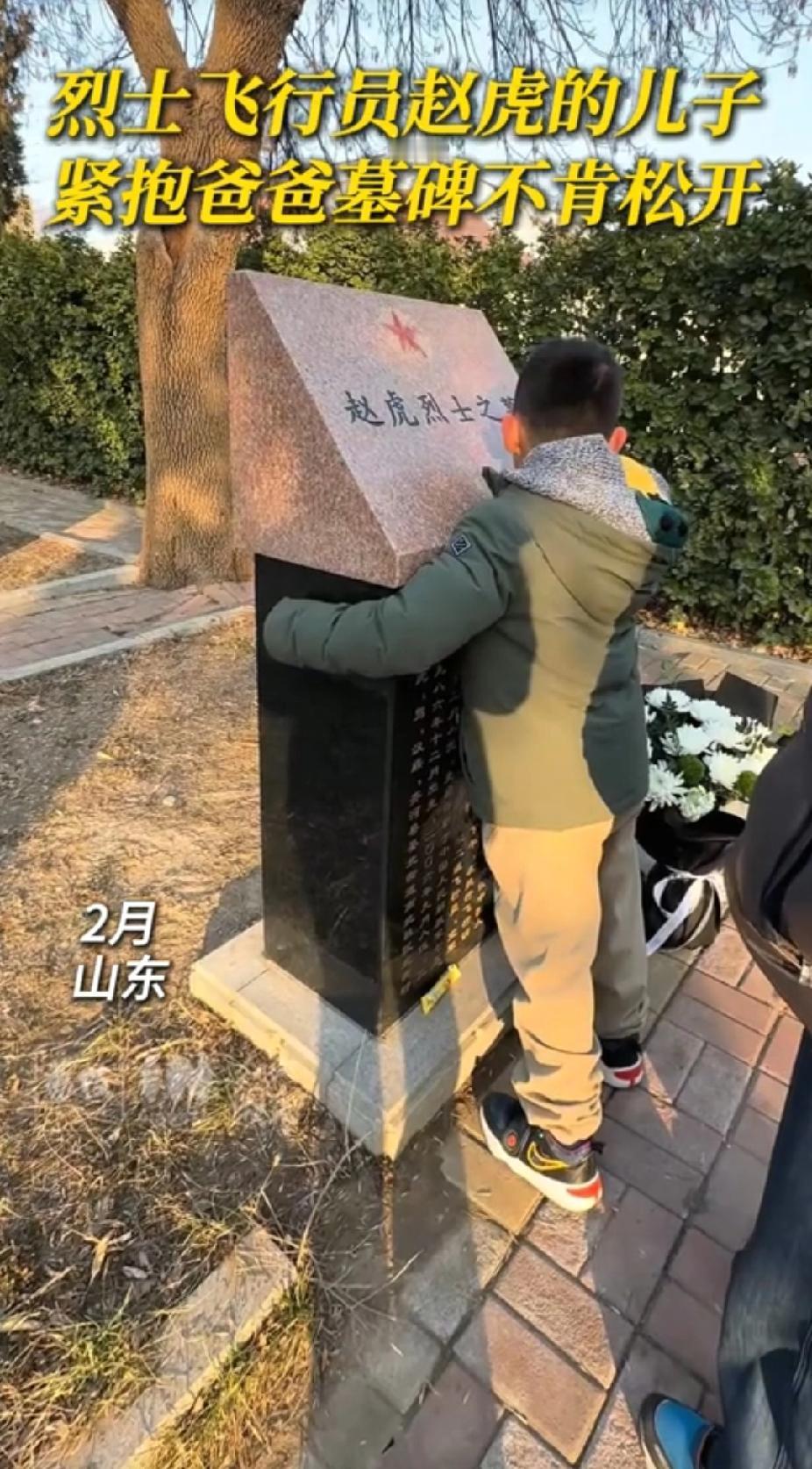 “泪目了!”山东德州,烈士陵园里,一个孩子紧紧贴着冰冷的墓碑哭得撕心裂肺,路过的祭扫者纷纷驻足,心里满是疑惑:这孩子为何如此悲痛?直到看清墓碑上烈士二字,又听旁人说起背后的故事,所有人瞬间红了眼眶,原来,这是孩子第一次给牺牲6年的英雄爸爸扫墓,一声声爸爸,喊碎了在场所有人的心。 现在不少烈士家属,都小心翼翼地守护着孩子的成长,不忍心过早让他们直面亲人离去的伤痛,可那份血脉相连的思念,从来不会被时间冲淡,反而会在心底慢慢扎根。 据媒体2月3日报道,孩子的爸爸赵虎是驻港部队飞行员,2020年执行飞行训练任务时壮烈牺牲,年仅35岁! 那时,孩子才刚满1岁,还不懂什么是离别,六年来,妈妈季女士一直没敢带孩子来烈士陵园,怕这份沉重的失去,压垮年幼的孩子。 直到近两年,孩子渐渐懂事,常听妈妈说爸爸是守护大家的英雄,看着家里爸爸的照片,孩子总说想见见爸爸,季女士这才鼓起勇气,带着孩子来到德州烈士陵园,还帮孩子准备了他亲手画的小画片,想送给素未谋面的爸爸。 令在场之人动容的是,当季女士轻声告诉孩子:“这就是爸爸的家”,孩子立刻扑到墓碑上紧紧抱住,稚嫩的哭声瞬间响起,一声声爸爸响彻陵园,久久不愿松开。 季女士站在一旁,红着眼眶轻抚墓碑,默默拭泪,没哭出声却满是心酸。 陵园的工作人员和前来祭扫的市民看到这一幕,纷纷红了眼眶,有人悄悄递上纸巾,没人忍心上前打扰,只静静陪着这对母子,看着孩子把积攒六年的思念全部释放。 老话说,“青山埋忠骨,浩气照千秋”,烈士赵虎用年轻的生命扛起了保家卫国的重任,把忠魂留在了这片他守护的土地上。而他的家人,用六年的隐忍和思念,守护着这份英雄的荣光,这份家国情怀与血脉深情,足以让所有人为之动容。 孩子这场迟来的祭扫,不仅是对父亲的思念,更是红色基因最鲜活的传承,他终于知道,自己的爸爸是个英雄,这份骄傲,会伴随他一生。 “英雄为国捐躯,我们为英雄守护家人”。孩子贴在墓碑上的哭声,是思念的倾诉,更是对英雄精神的呼唤。 愿这份跨越六年的思念,能化作更多善意的暖流,温暖烈士家属的岁岁年年,也愿我们每个人都能铭记英烈、致敬英雄,让英雄的精神代代相传,永不褪色。