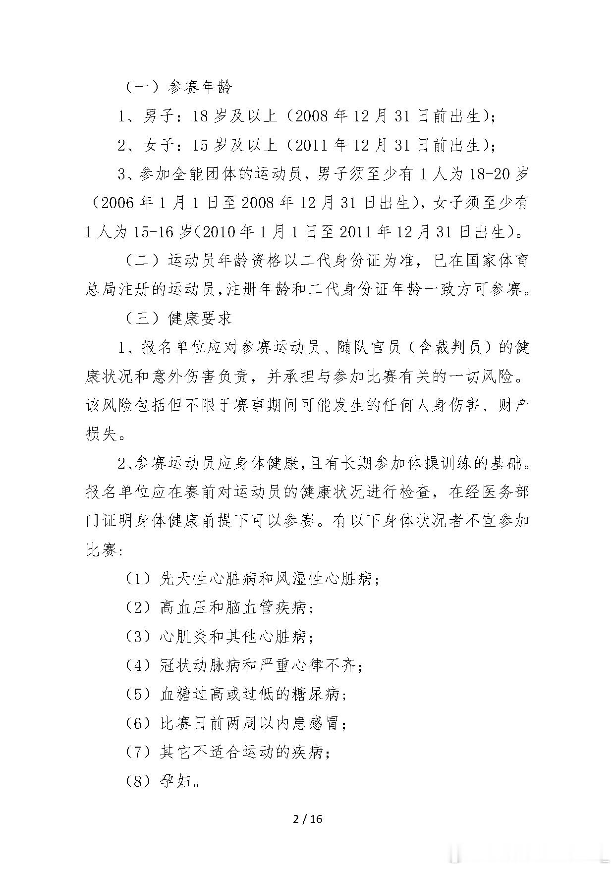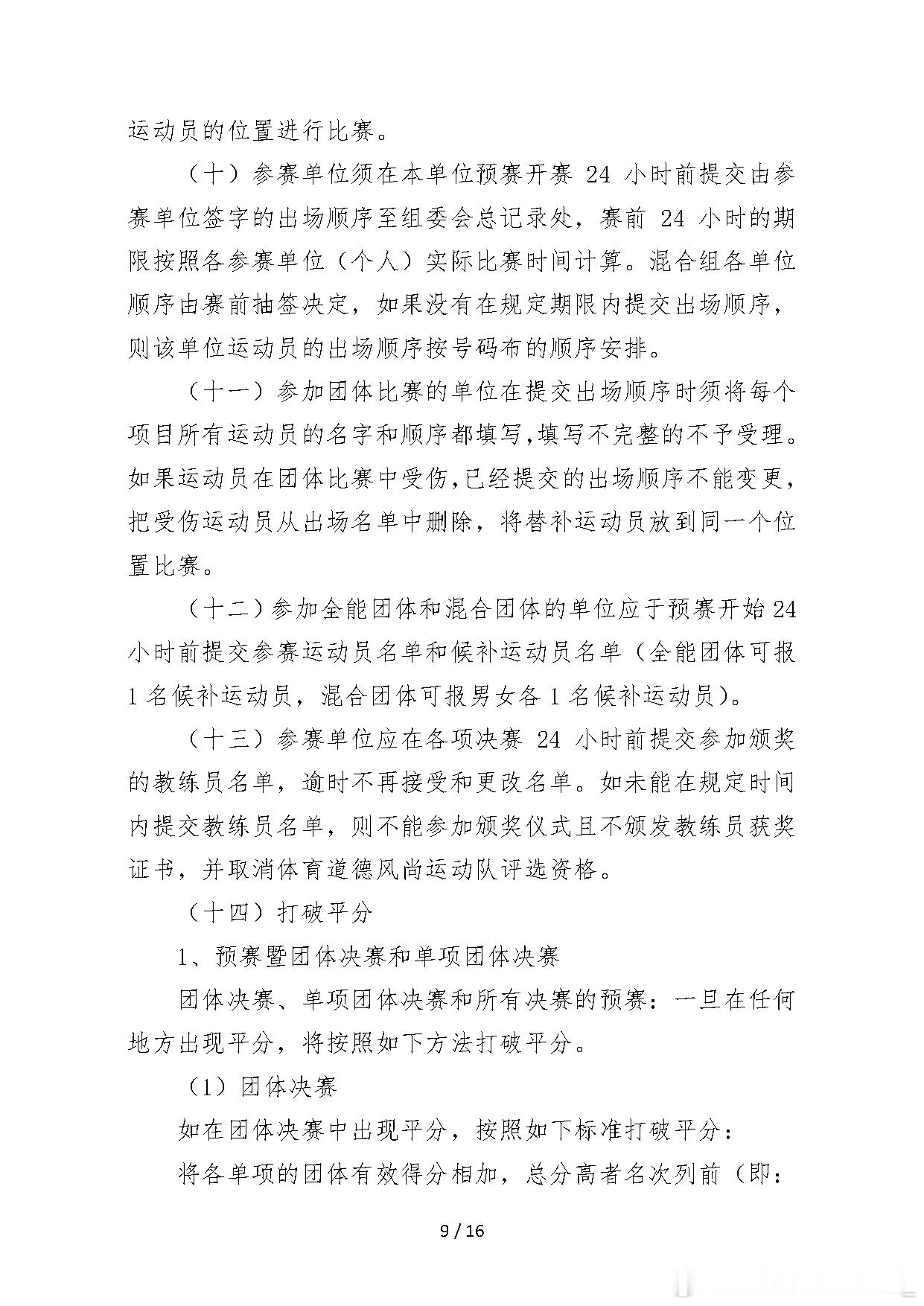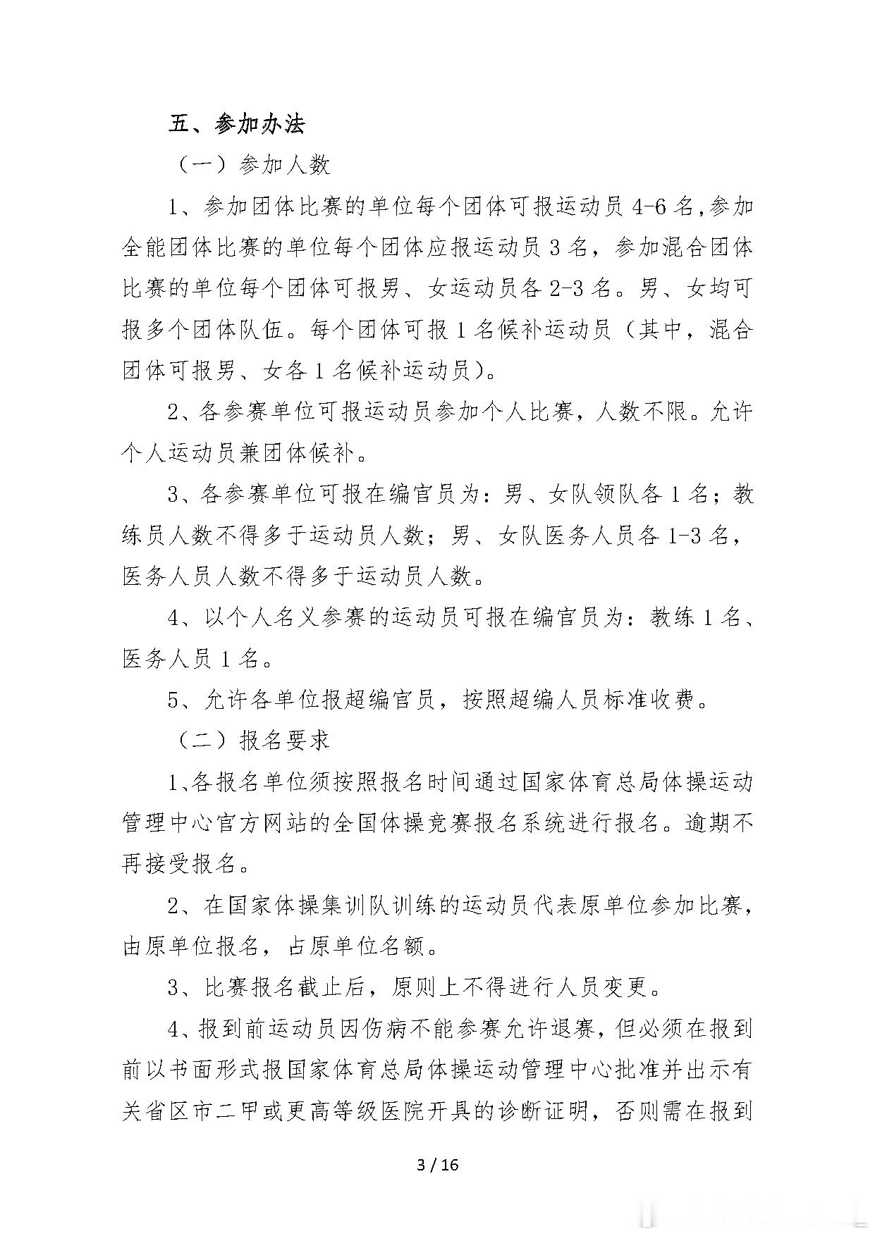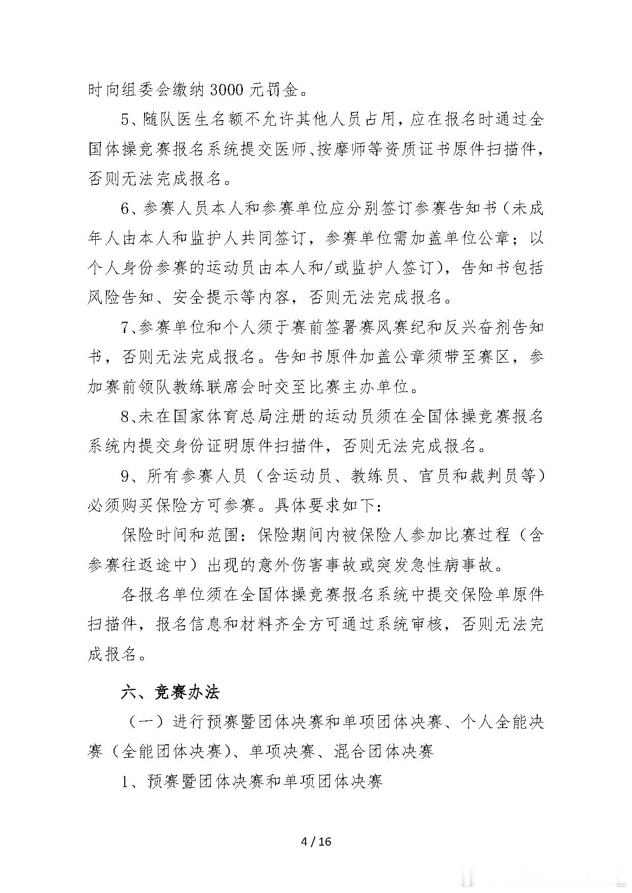 全锦赛 全锦赛竞赛规程征求意见稿公布,资格赛即为团体决赛(6-5-4赛制),但在全能决赛中增设全能团体比赛,另外单设混合团体决赛。全能团体比赛采用3-3-3赛制,即每队选派三位全能选手参赛,三人成绩直接相加进行团体排名,且三人中至少要包含一名年轻选手(男子06-08年,女子10-11年)。混合团体比赛只比男子自由操、双杠、单杠三项和女子高低杠、平衡木、自由操三项,资格采用3-3-2赛制,决赛采用3-2-2赛制。混合团体决赛八支队伍参加,比赛分为三轮,每轮比男女各两项次,但每队的比赛顺序可以自选(优劣势项目的顺序也可能成为胜败关键),每个项目最多上场两人。前两轮结束后,排名前4的队伍晋级第三轮,第5-8名直接淘汰。决赛轮中,前两轮的得分清零,直接以第三轮的分数决定最终名次。