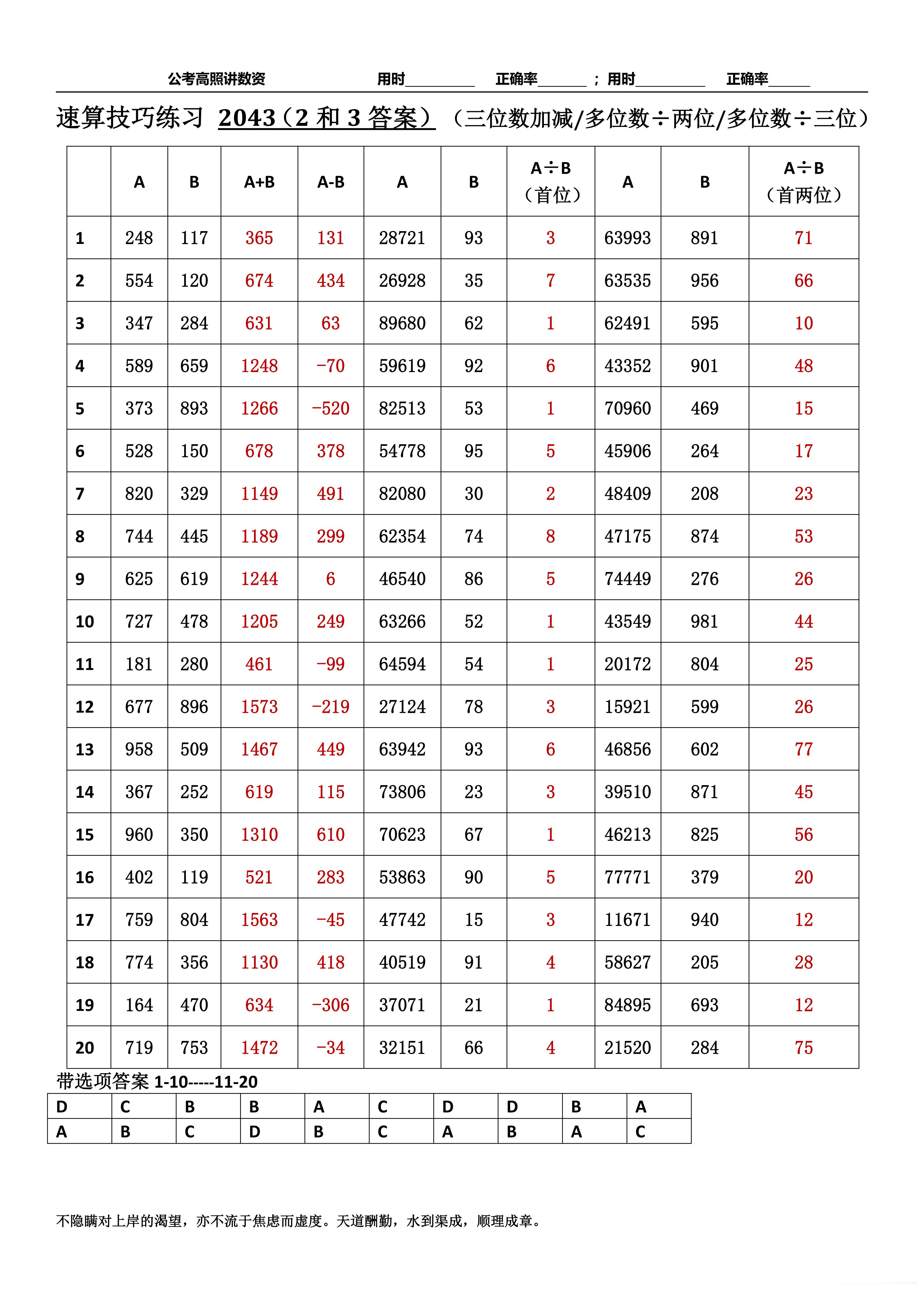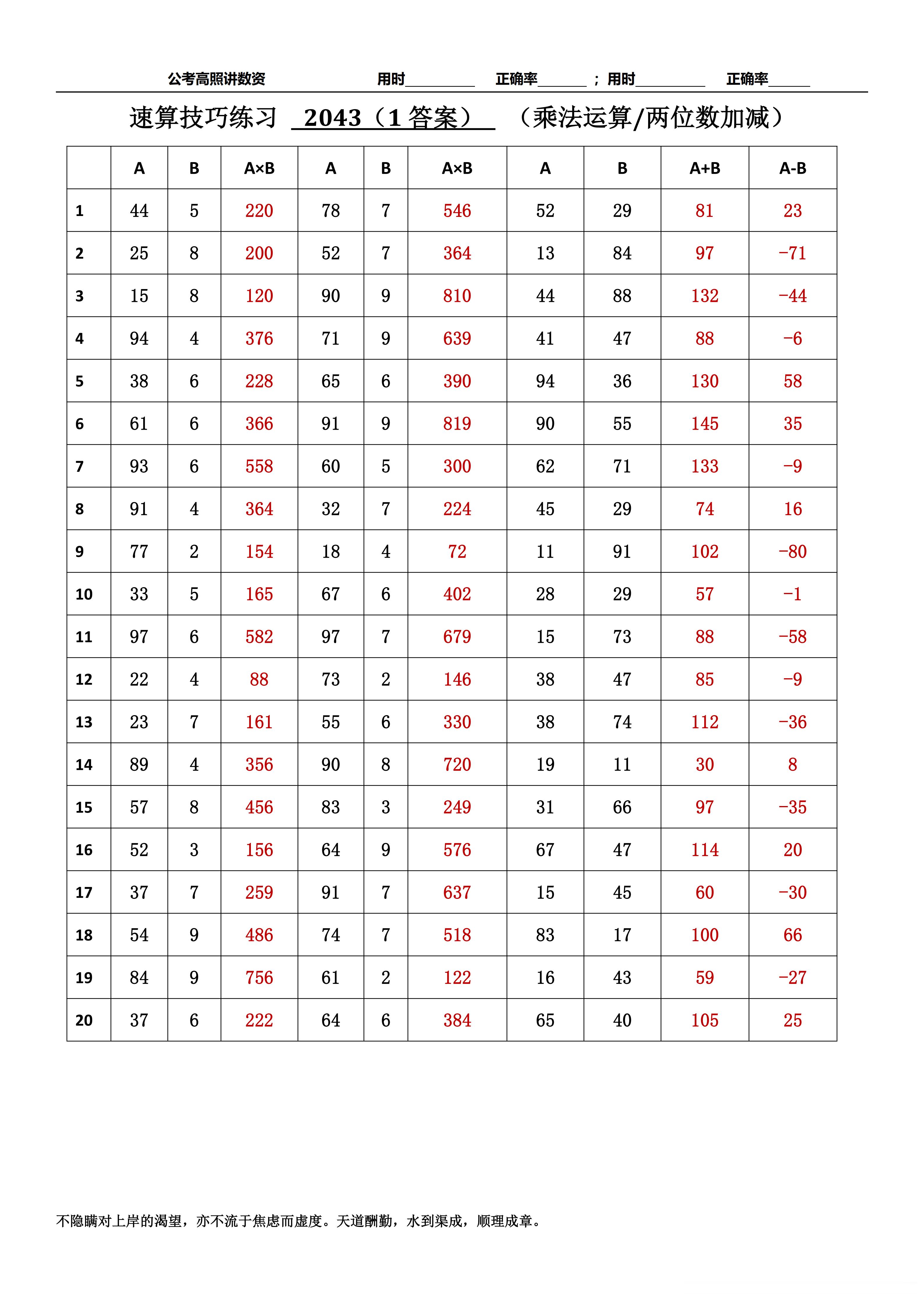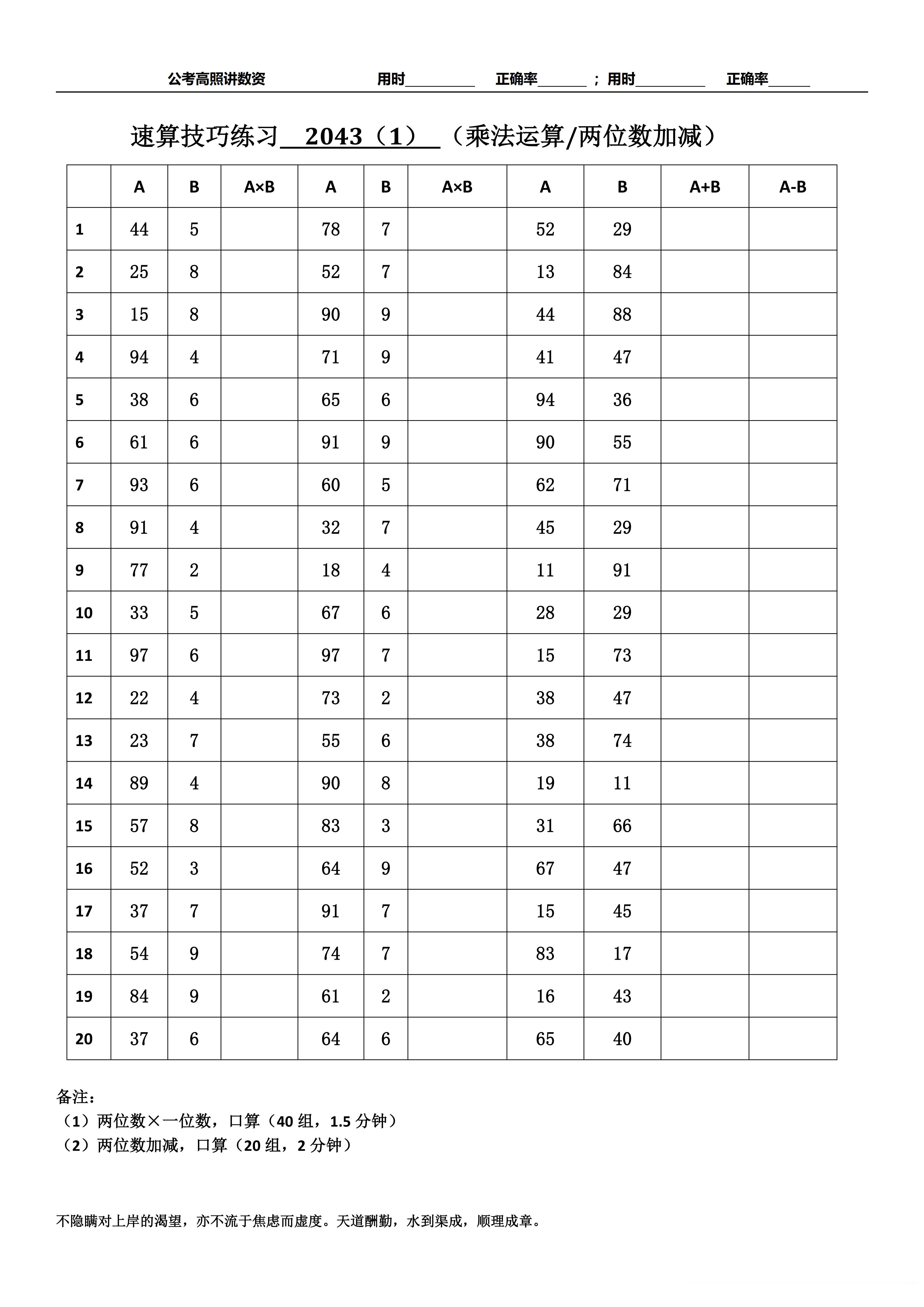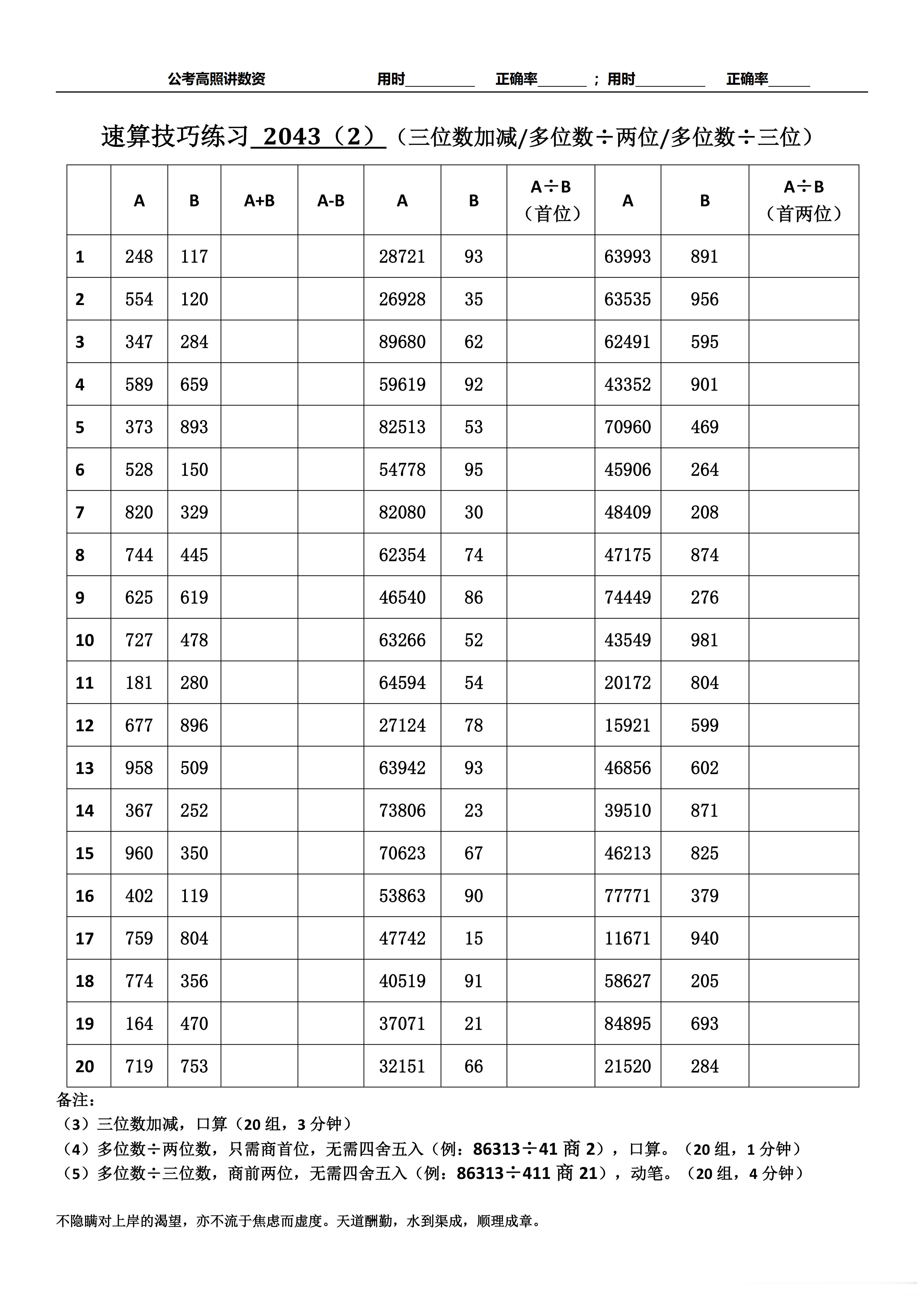 跟着高照练速算决战公考 速算练习2043