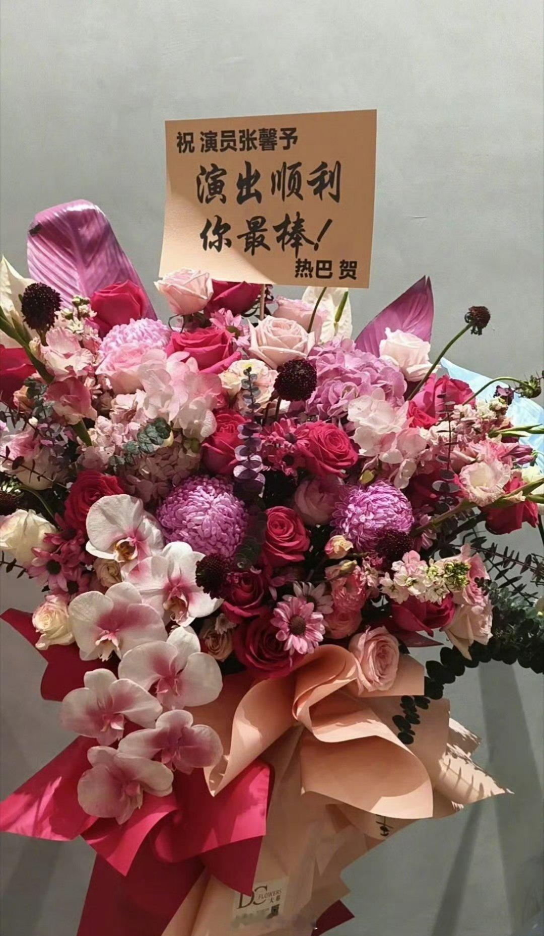 哇哦,迪丽热巴给张馨予的舞台剧送花篮啦,两个人合作过一次,过了这么久,感情还这么好呢,漂亮姐姐惺惺相惜呀