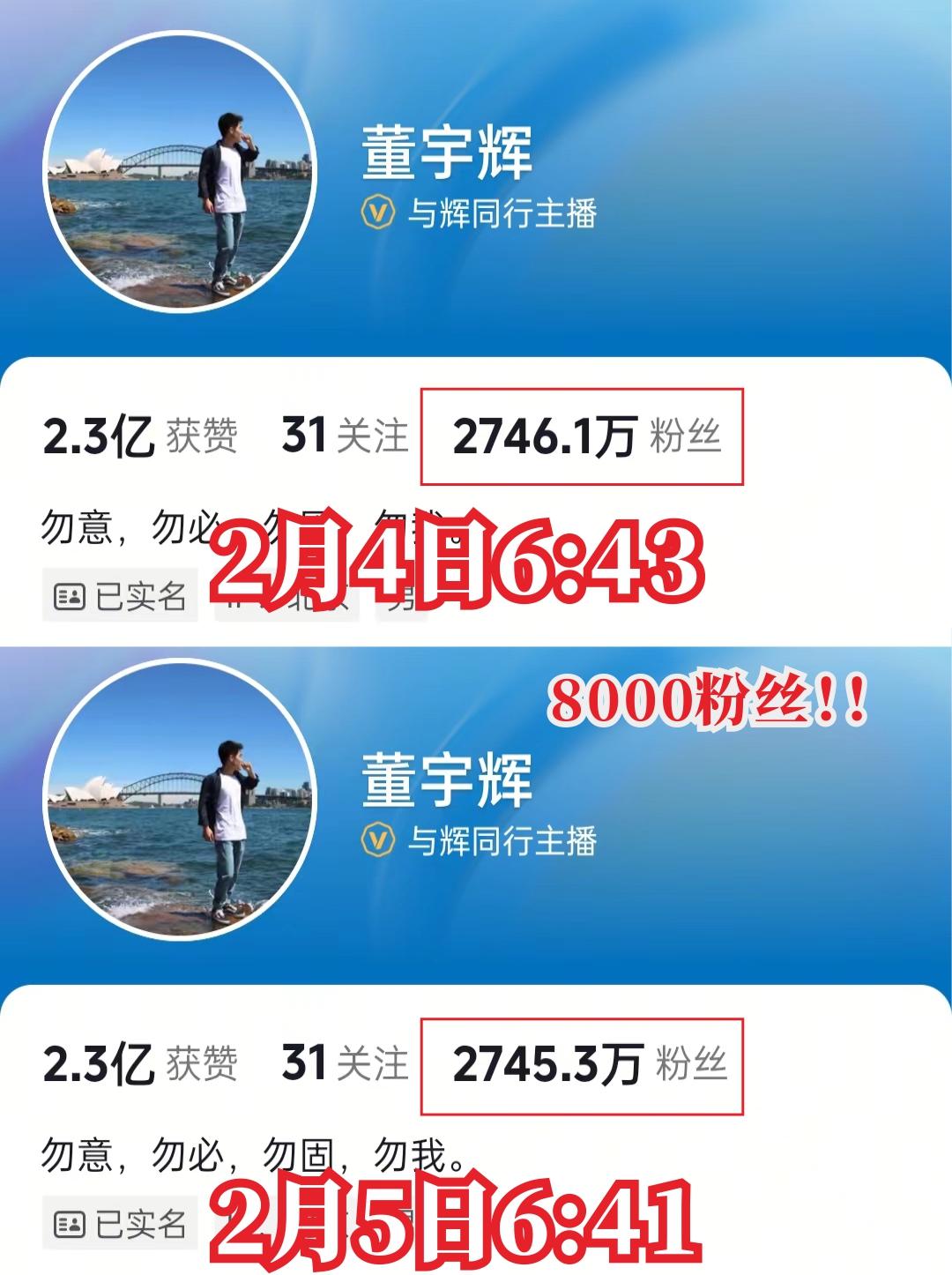 董宇辉抖音粉丝一天之内掉粉8000人!近段时间,董宇辉风波不断,先是“三只鸡事件”上热搜,引起不小争议,之后是“卖春联事件”,有好事者竟然扒出之前,他对网上买春联的看法。最近,又开始针对“广西砂糖橘”了,批评卖得贵,没有帮助到果农,其实这样说不客观,果农把砂糖橘销出去了,赚到钱了,董宇辉也赚到钱了,正常缴税,网友吃到了好砂糖橘,一举四得。