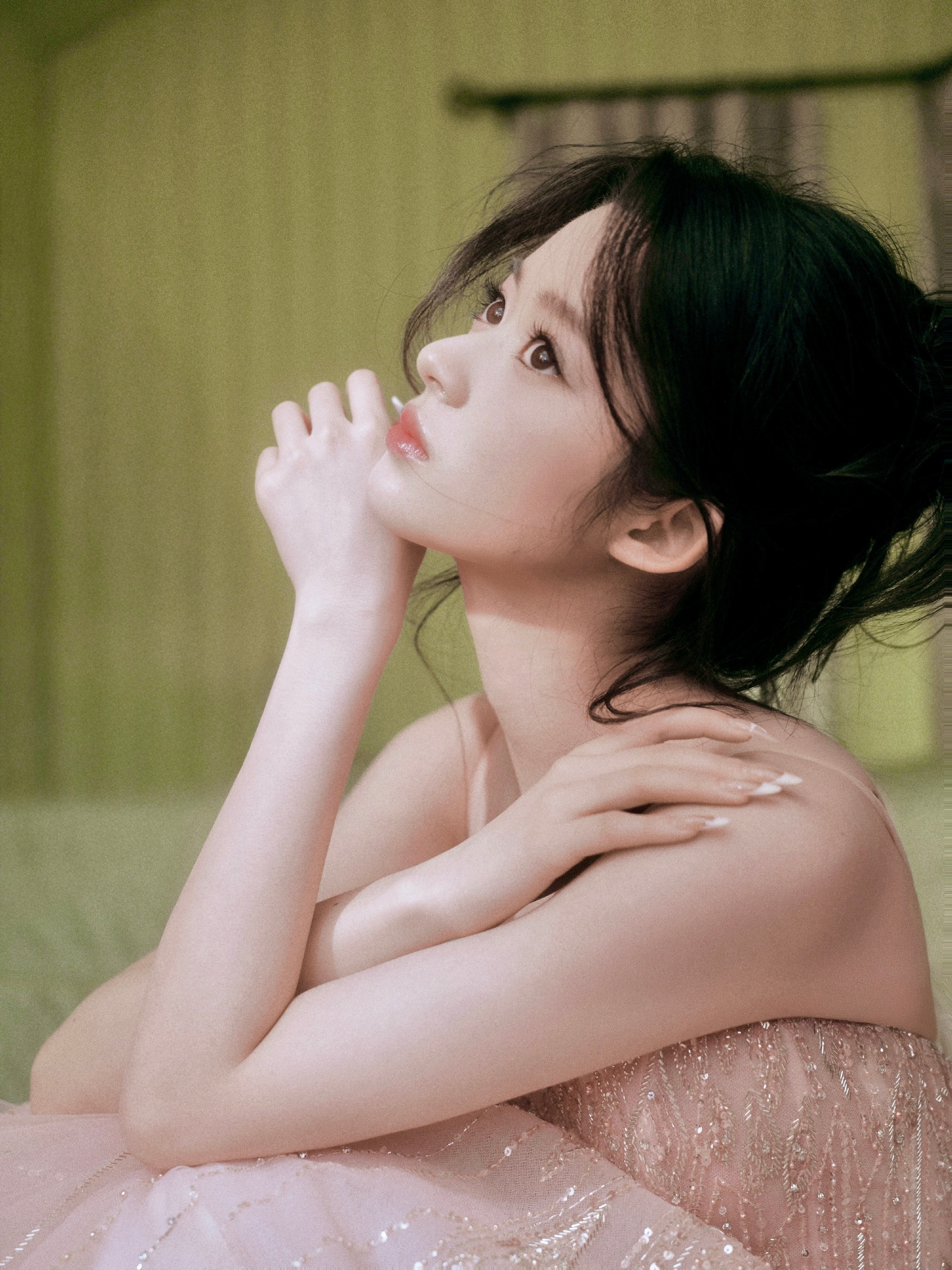 粉色吊带裙清甜又贵气,黄杨钿甜好有少女感,童星到科班小花的蜕变,太美了! 微博之夜出图