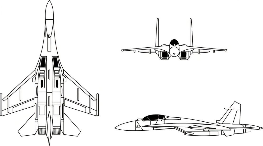 Su-27战斗机属于第四代战机,主要假想敌是美制F-15战斗机,设计要求航程远、载弹量大以及很高的操控灵活性。该机采用翼身融合体技术,悬壁式中单翼,翼根外有光滑弯曲前伸的边条翼,双垂尾正常式布局,楔型进气道位于翼身融合体的前下方,有很好的气动性能。Su-27战斗机装有1门30毫米GSh-30-1机炮,备弹150发。该机可携带的导弹包括R-27(AA-10“白杨”)空对空导弹、R-73(AA-11“射手”)空对空导弹等,还可携带多种炸弹。