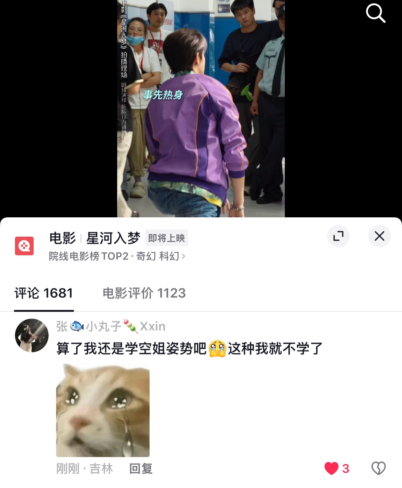 “前天学鲤鱼打挺 昨天学转刀 今天学飞踢 明天学啥”电影星河入梦✨王鹤棣星河入梦