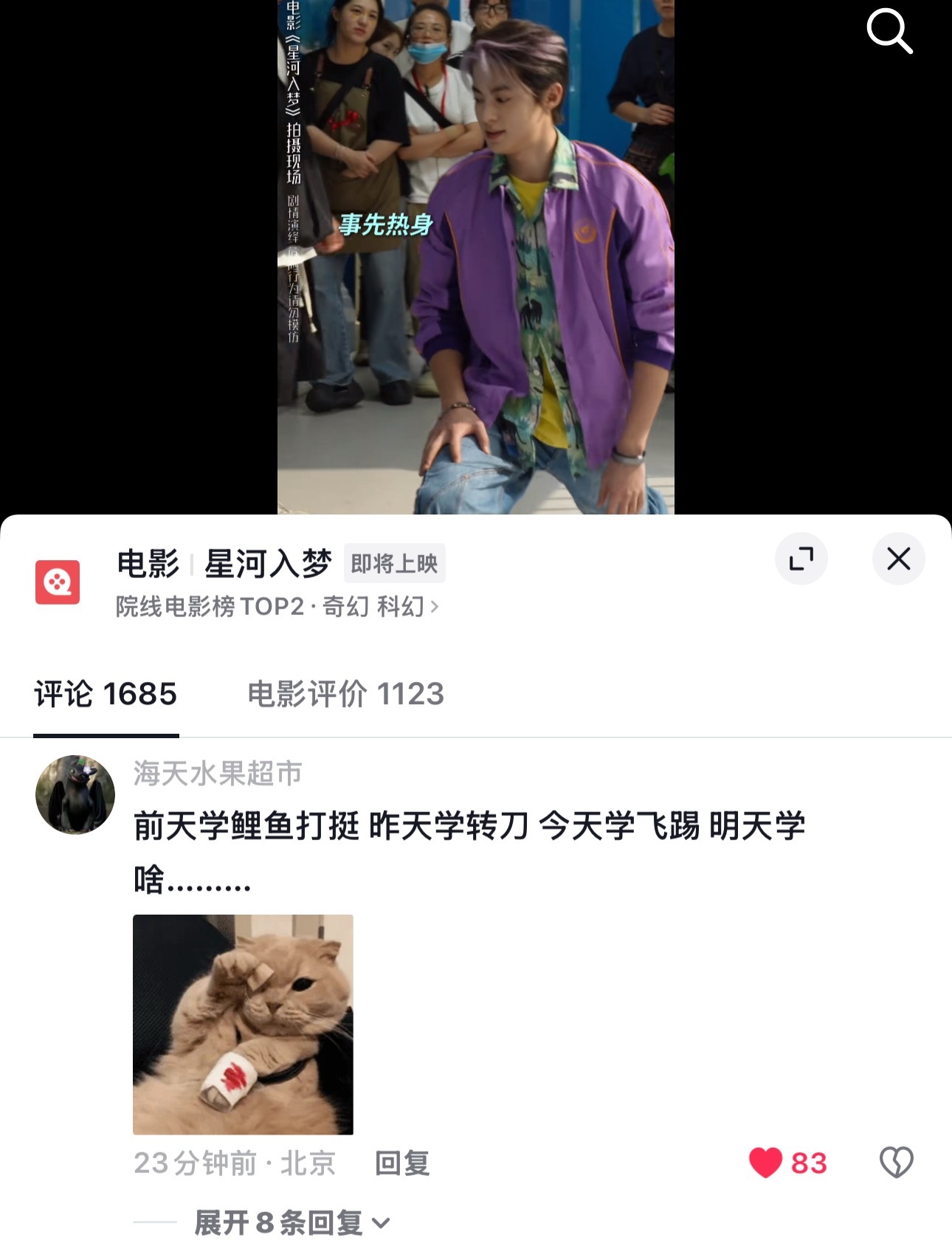 “前天学鲤鱼打挺昨天学转刀今天学飞踢明天学啥”电影星河入梦✨王鹤棣星河入梦