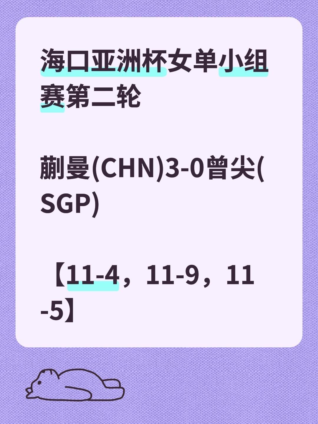 海口亚洲杯女单小组赛第二轮 蒯曼(CHN)3-0曾尖(SGP) 【11-4,11-9,11-5】