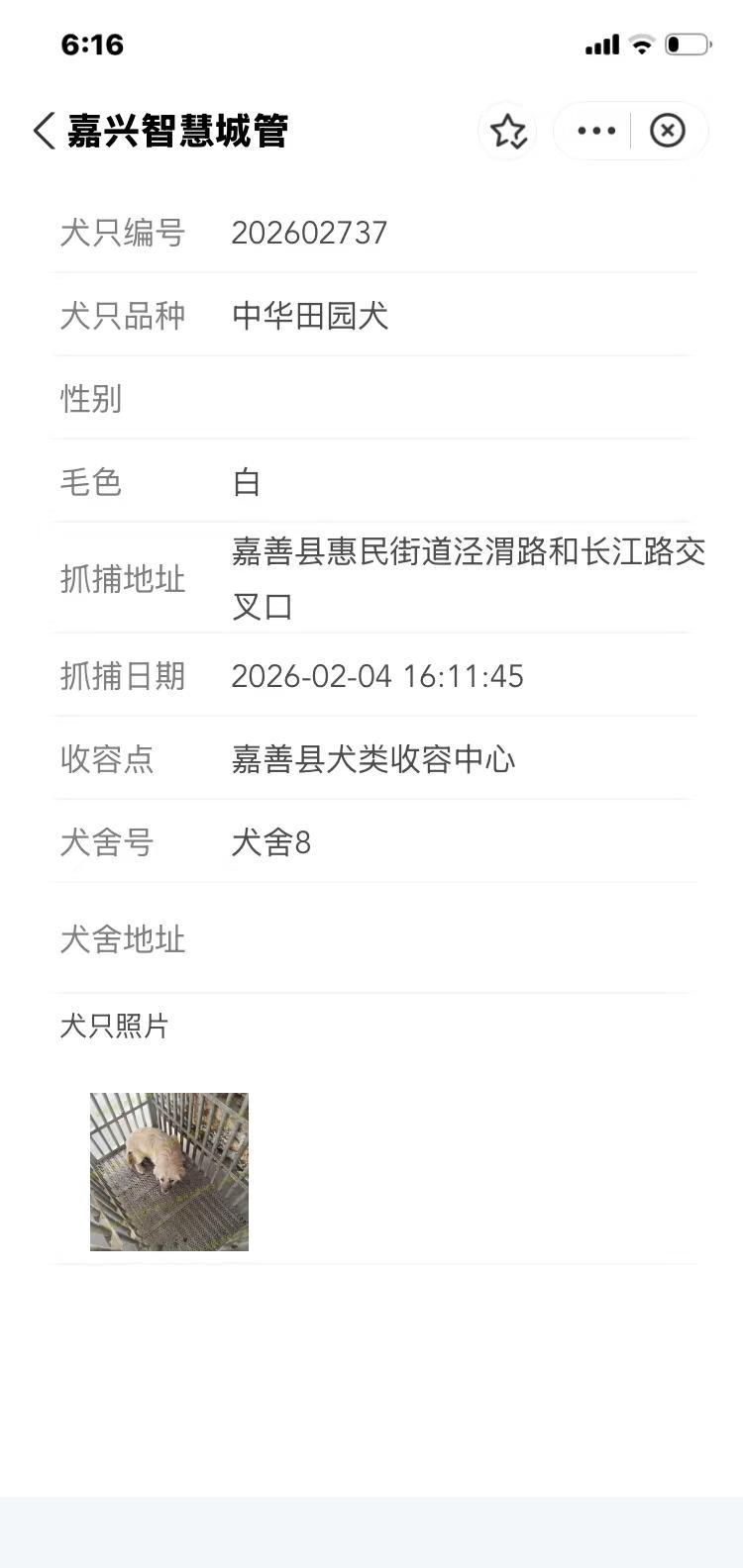 浙江浙里办嘉兴(嘉善)2026.2.4日犬只公示 昨天的全部都看不了,丢狗的赶紧去找他们。 嘉善寻狗 新增2只狗狗,其他图片还是看不了。 今天嘉善县新增2只,抓捕地嘉善县泾渭路和长江路交叉口,薛家桥。只有三天公示时间。之前很多狗狗下架后就看不见了。 嘉兴嘉善县找狗进入浙里办小程序或某宝搜浙里办,搜索找到嘉兴智慧城管~嘉兴犬管~选择嘉善县~自主申办~认领公告。晚了再也找不到狗狗了。嘉兴抓捕狗狗公示包括南湖区,秀洲区,经开区,嘉善县,平湖市,海盐县,桐乡市,港区。嘉兴嘉善县寻狗 嘉善寻狗启示 嘉善县 嘉善找狗 嘉善狗狗走丢 嘉善狗狗领养 嘉善惠民街道寻狗
