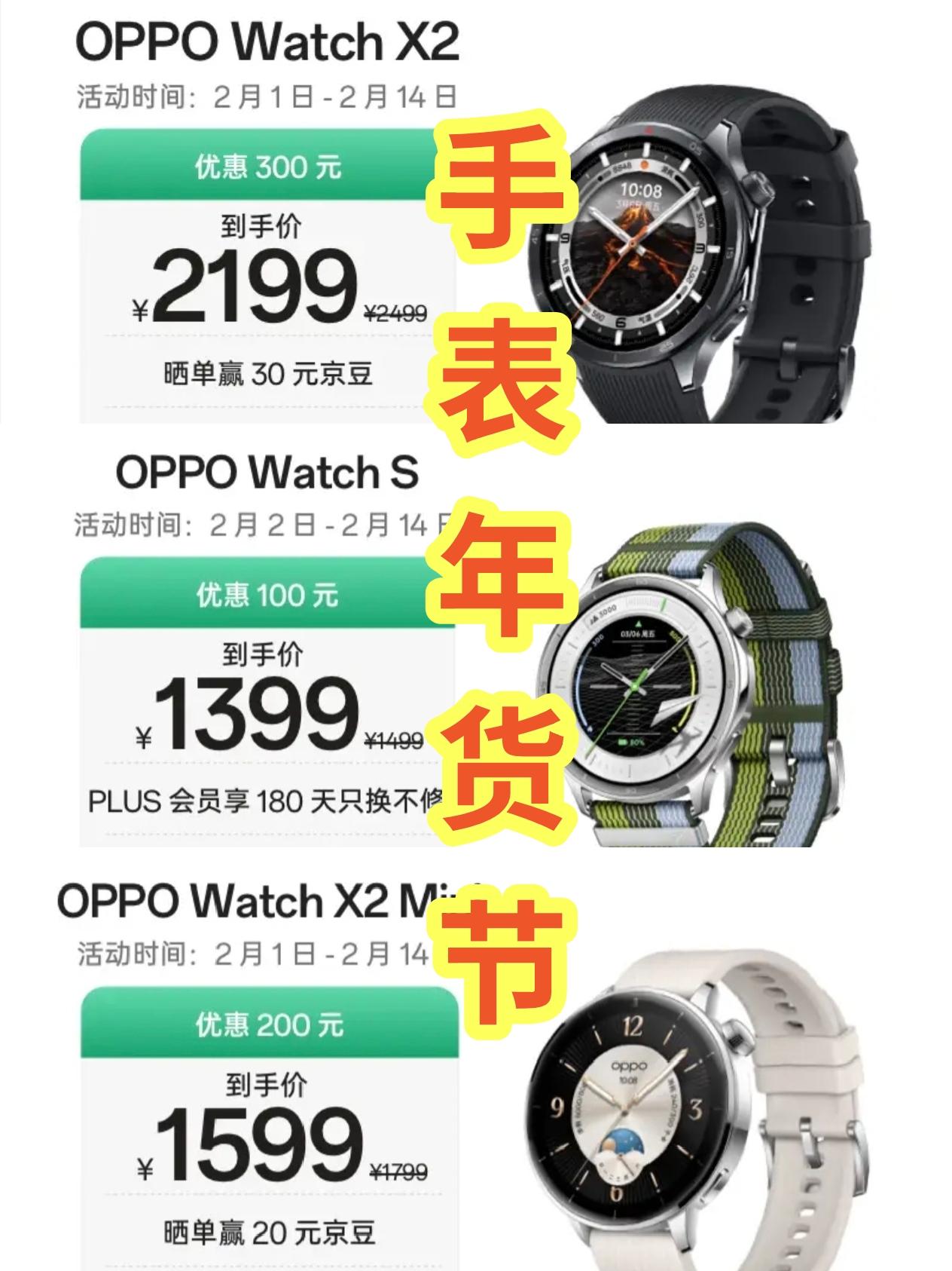 OPPO手表年货节分享|这波福利不冲真的亏 作为常年蹲数码福利的打工人,每年年货节都是入手智能表的最佳时机,今年OPPO手表的活动真的把诚意拉满了! 先划重点:拒绝套路,下单就赠,还有国补85折(部分地区可用),比平时省出一杯奶茶钱,新年戴新表还能沾沾红运,性价比直接拉满。 说真的OPPOWatchS,颜值真的戳我,搭配赠送好运红表带礼盒,新年氛围感直接拉满,日常通勤、走亲访友戴都很合适,轻薄的机身戴久了也不压手腕,出差续航完全够用,不用天天充电太省心了。 另外,身边朋友入了OPPOWatchX2,上手质感绝了,赠送的氟橡胶表带亲肤不闷汗,运动戴很舒服,硅胶款则更百搭,日常换戴完全不重样。 不管是健康监测还是运动记录都很精准,比同价位其他手表实用性更高,长辈戴也能轻松上手。 真心建议别等涨价再入手,现在年货节福利buff叠满:OPPOWatchS赠红表带礼盒,OPPOWatchX2/OPPOWatchX2Mini赠专属表带,叠加国补更划算。 这波福利不是常年有,不管是自用还是送长辈、送朋友,都是新年刚需好物,蹲数码福利的姐妹闭眼冲就对了~ OPPO手表 OPPOWatchX2 OPPOWatchX2Mini OPPO开运年货节 OPPOWatchS数码大玩家