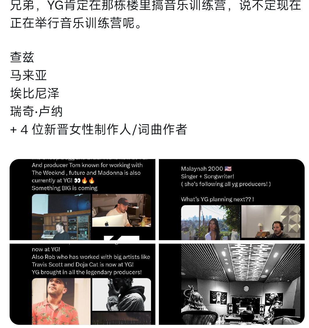 YG招了四位女性制作人,多个海外制作人齐聚至少能确定今年的yg是活跃的,至于是为哪个团准备的就不知道了