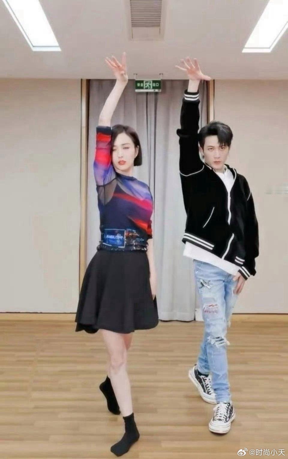 檀健次和佟丽娅一起练舞,不得不说女生苗条就是显高。