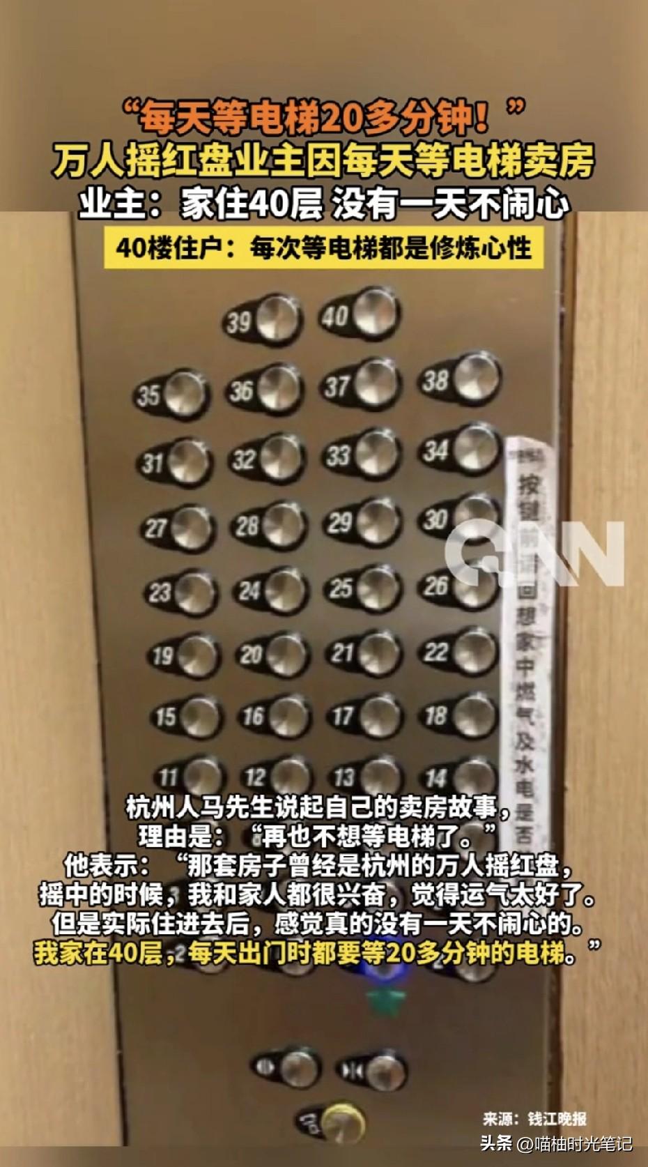 杭州的马先生,每天出门先排20分钟“天梯”,回家再排20分钟“赎身”,一年光等电梯就是整整5个昼夜,再贵的风景也抵不过日复一日的焦躁。于是住在云端的他挥刀自砍:这房亏本也要卖! 小编视角: 过去,站得高、望得远、面子拉满。 现实,消防限80米、梯户比失衡、早高峰垂直春运。 政策端已放话:80米以上住宅要消防专项审批,未来超高层不再批“白菜价”。 时间成本正在偷走房价红利,每天40分钟浪费在电梯,一年就是243小时,折合6个工作周。按杭州白领时薪100元算,一年白扔2.4万,十年24万,房子“隐性贬值”。 买房逻辑变了,从“追高”到“追舒适”。疫情后大家居家时间暴涨,物业差、梯难等、隔音烂,每一颗雷都能引爆换房链。马先生不是第一个跑路,也不会是最后一个。钱江新城某50层公寓,二手挂牌量同比暴涨35%,接盘侠却寥寥。 马先生只不过是把“居住体验”摆在“资产信仰”前面。房子再红,也红不过每天的好心情;资产再硬核,硬不过时间成本。高层不是原罪,但梯户比、物业、维保、消防任何一环掉链子,云端秒变“云监”。买房别只盯着层高、视角、倒挂。 先问问自己:早高峰愿不愿意和那部电梯谈恋爱? 朋友们你家住几层,最长等过多久的电梯?如果每天让你多花20分钟等梯,你会卖房吗?欢迎评论区聊聊~ (信源:青岛新闻网,钱江晚报)